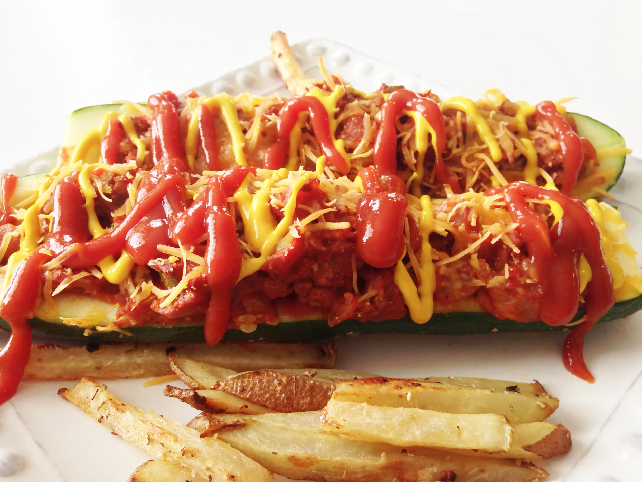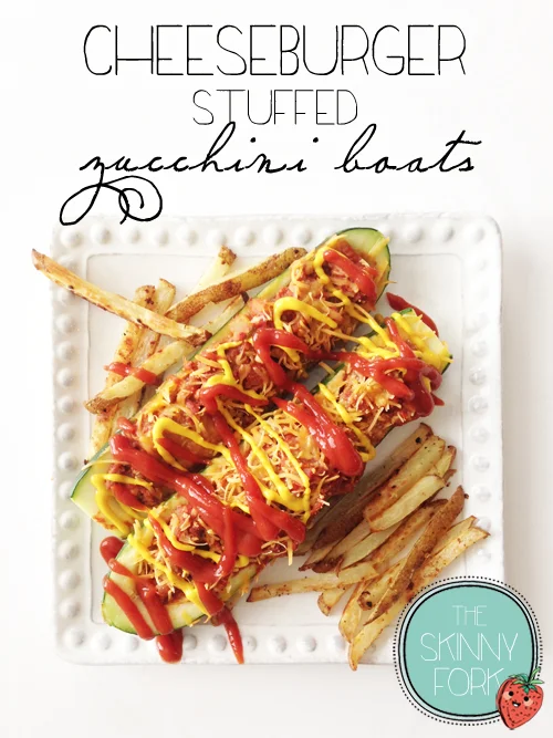 There were no complaints around the table. In fact, it was pretty silent as we all scarfed our guiltless dinner down! I baked up my own 'fries' to go along side these zucchini boats, but any traditional side that you would pair with a burger would be just as great.