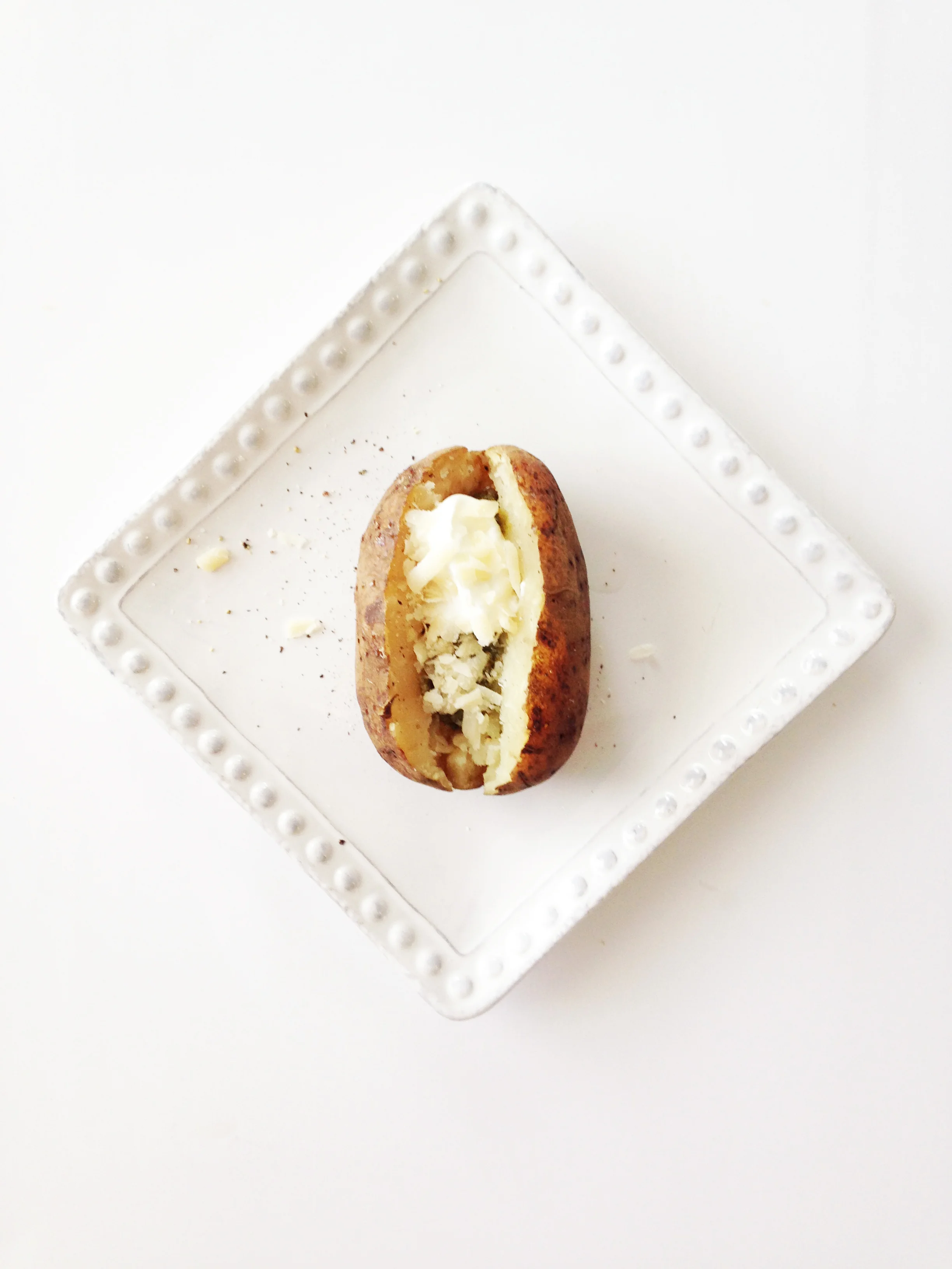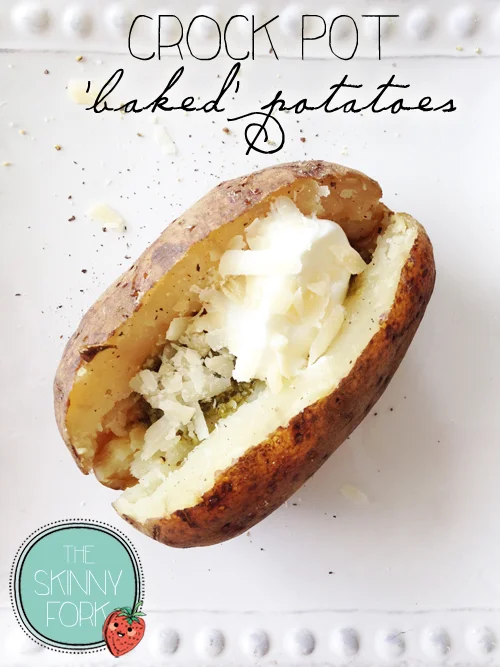 For the longest time, I never knew this little trick. You can fake-bake your potatoes in a slow cooker, and it's so super easy that it's pretty ridiculous!