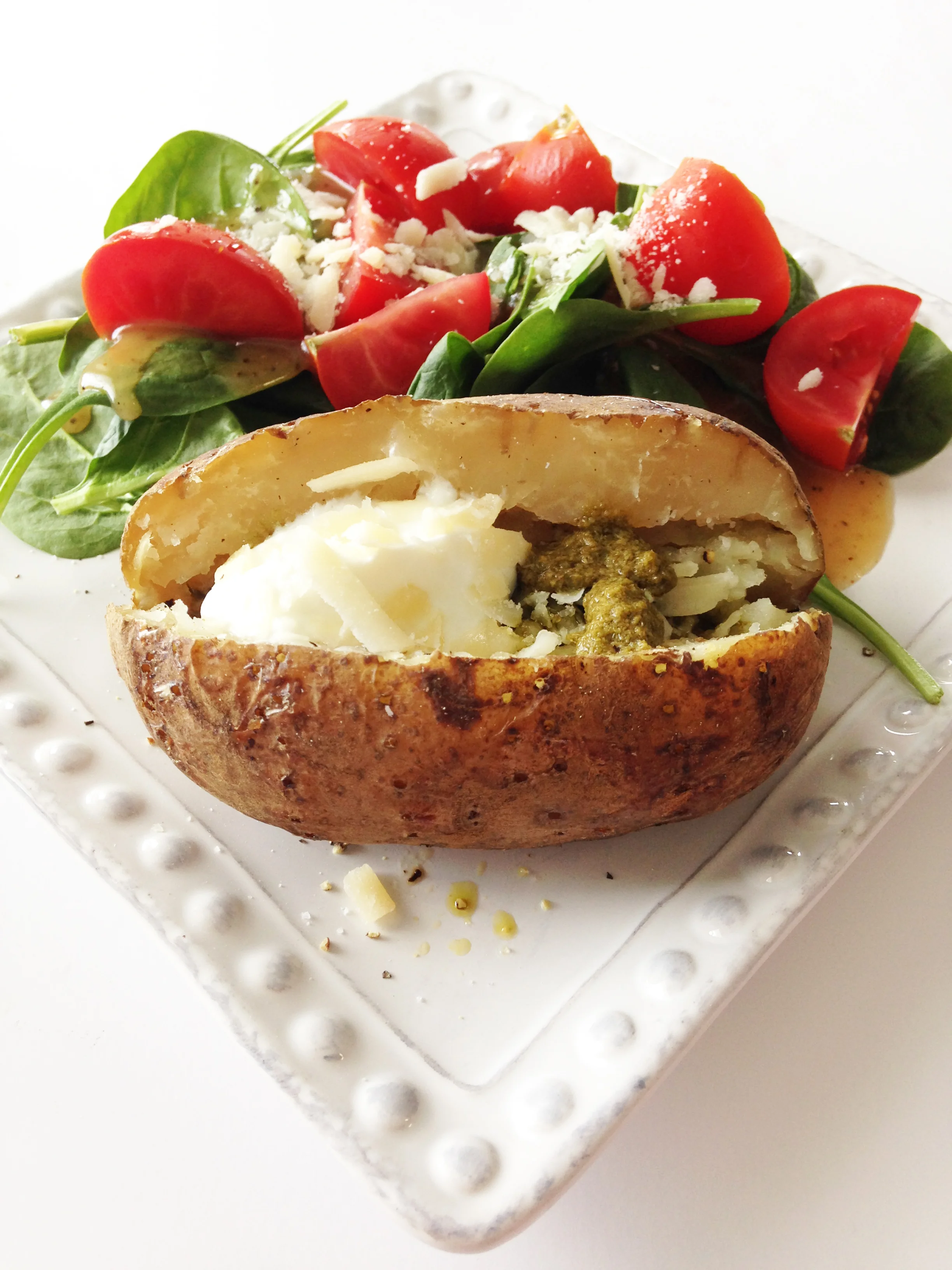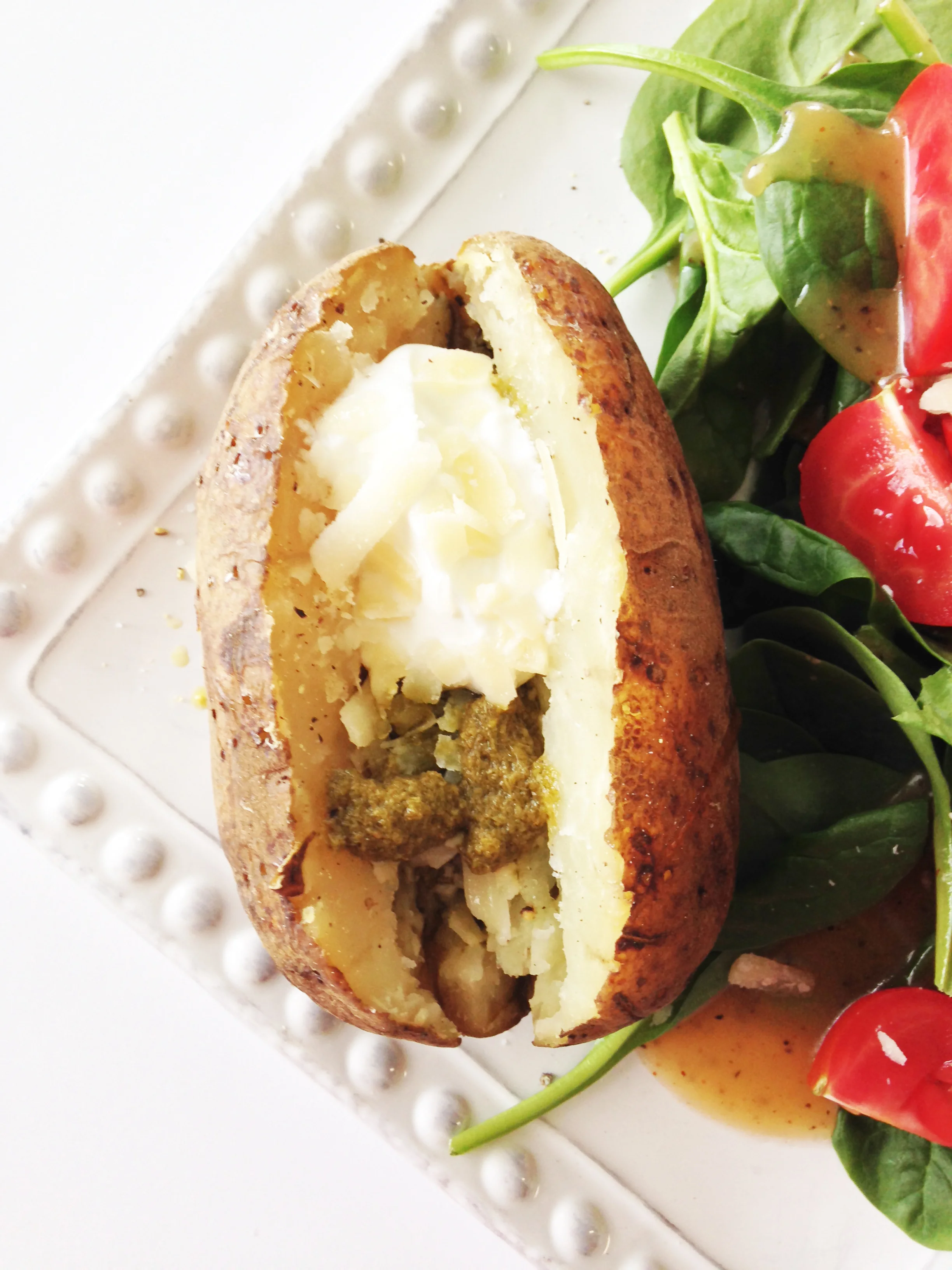 Crock Pot 'Baked' Potatoes (With Skinny Pesto & Parmesan)