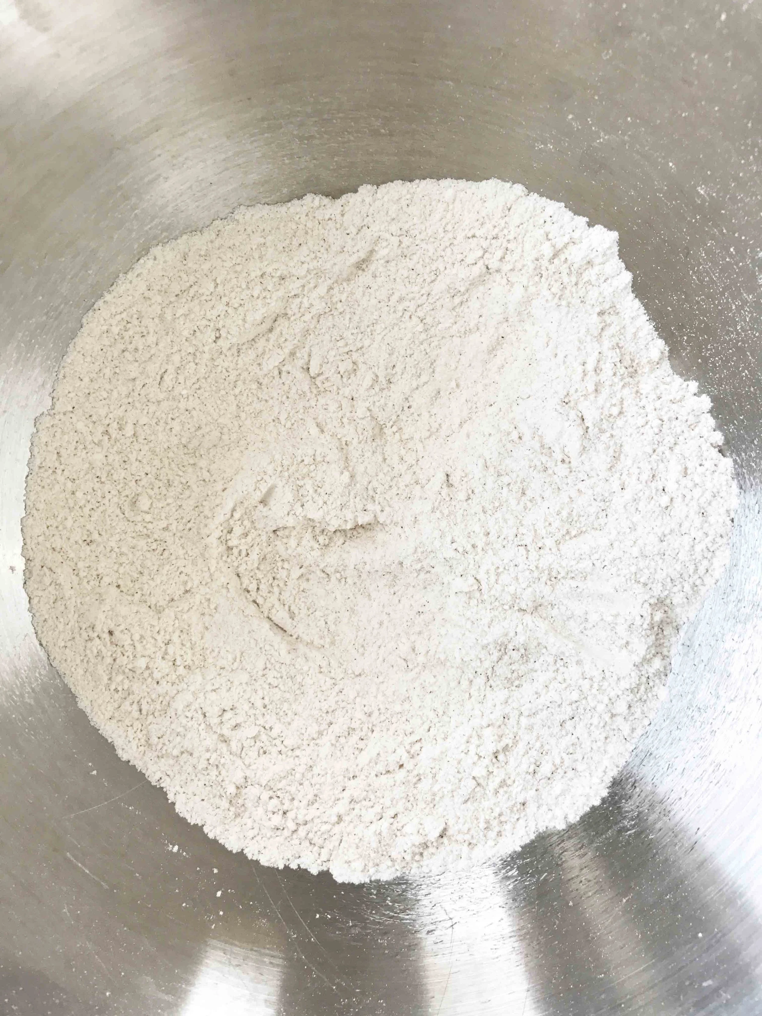 Combine the 1 C. Whole Wheat White Flour, 2 Tbsp. Sugar, 2 Tbsp. Natural Sweetener, 1 Tsp. Baking Powder and 1/4 Tsp. Ground Cinnamon into a large bowl until well blended. Set aside.