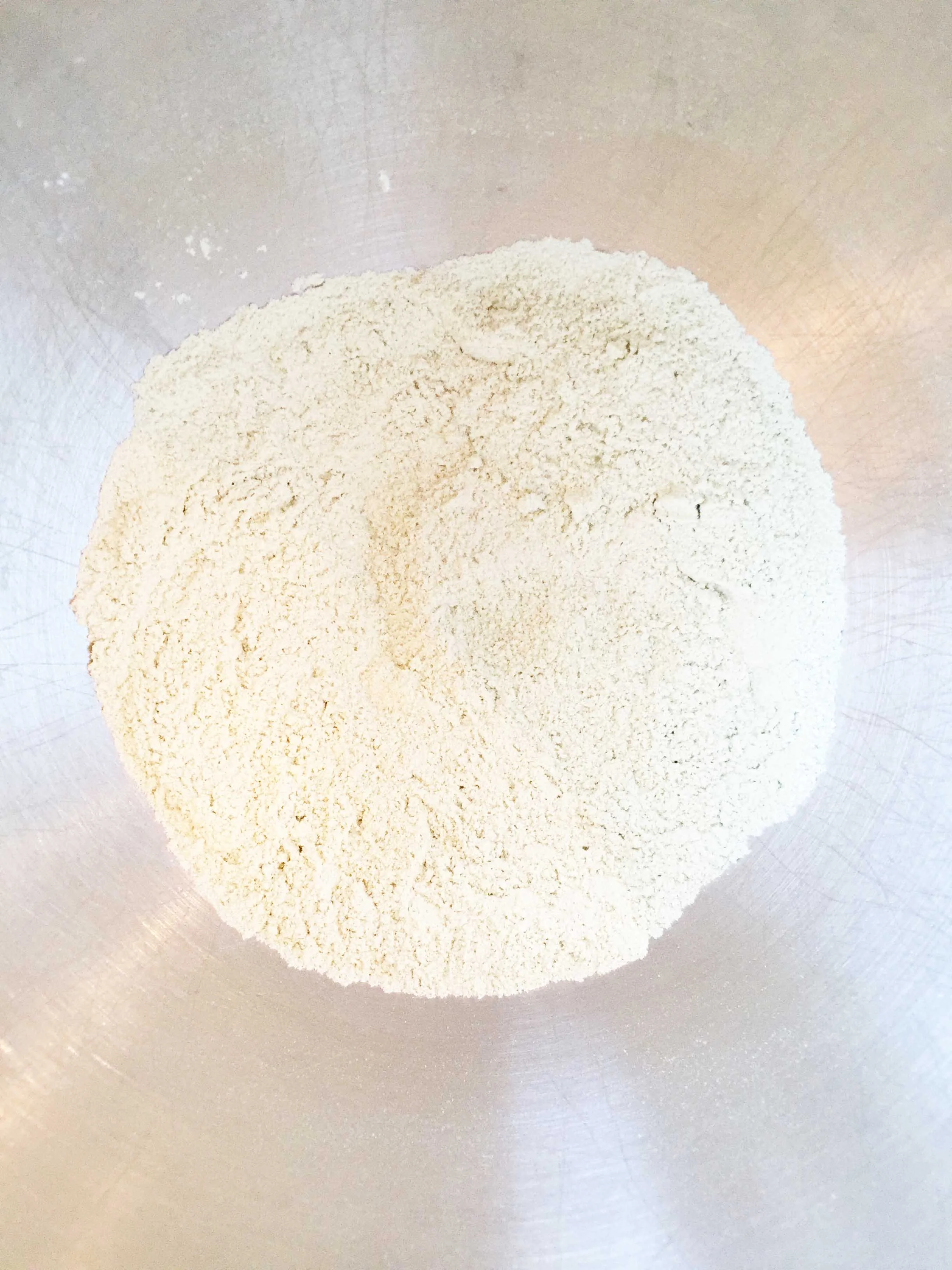 Whisk together the 1 C. Gluten Free Flour, 2 Tsp. Matcha (Dry Green Tea Powder), 1 Tsp. Baking Powder, and /4 Tsp. Baking Soda.