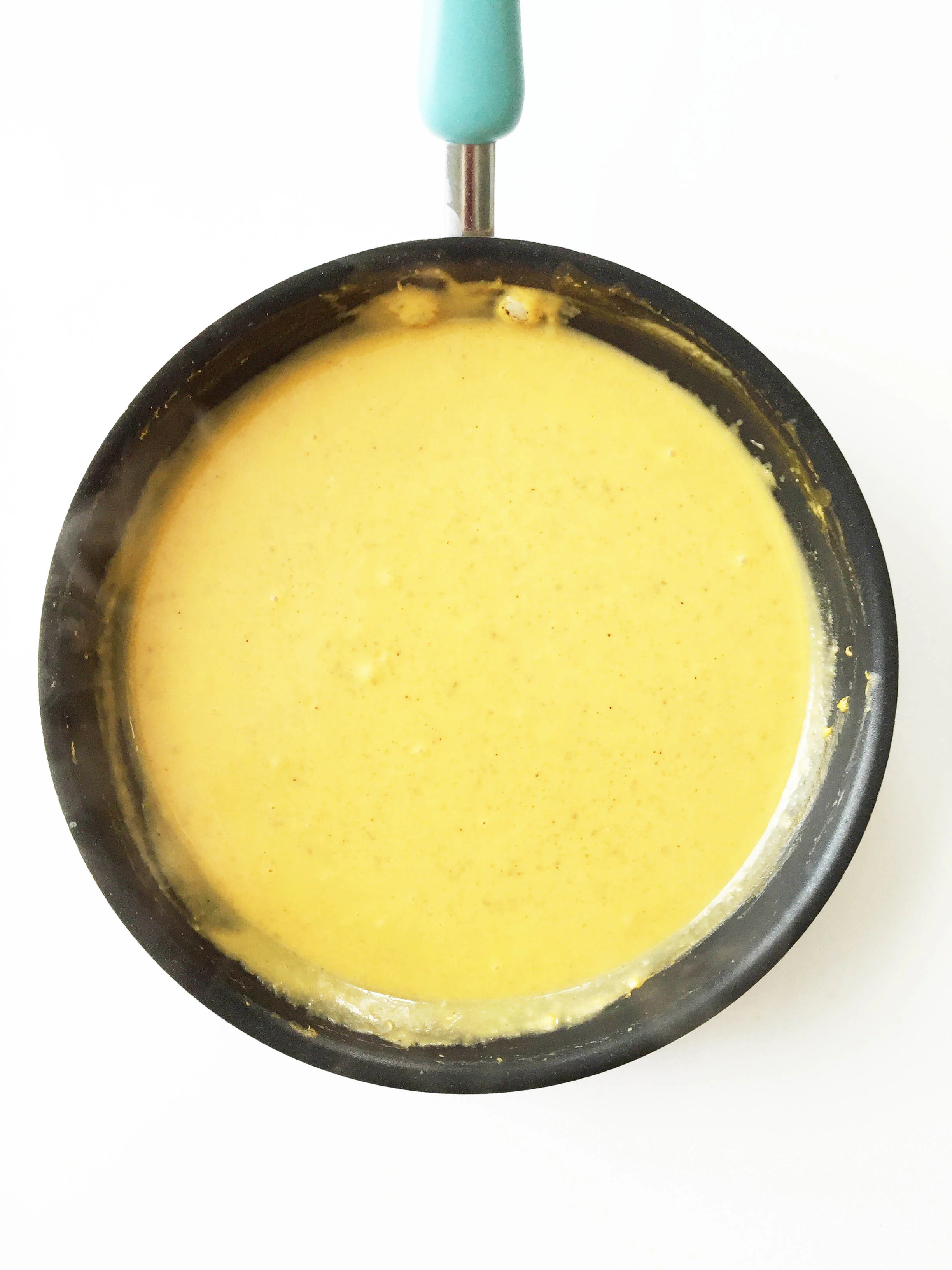 Once the sauce has thickened, turn the heat off and slowly whisk in the 3/4 C. Horizon Organic Shredded Cheddar Cheese until it's all melted.