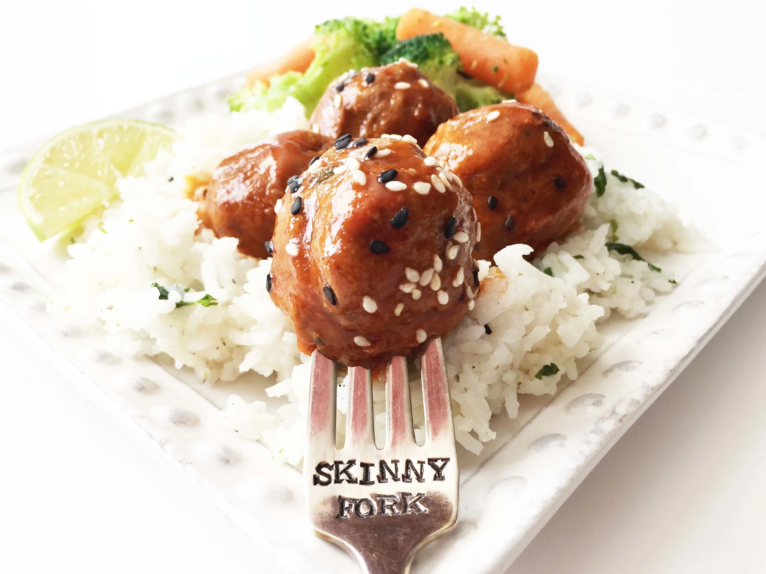 I served my meatballs over a Cilantro-Lime Coconut Rice and with a side of fresh steamed broccoli and carrots to make it all a complete meal. But, as I said, you could always serve these up as a game-day appetizer for your next football watching party spread.