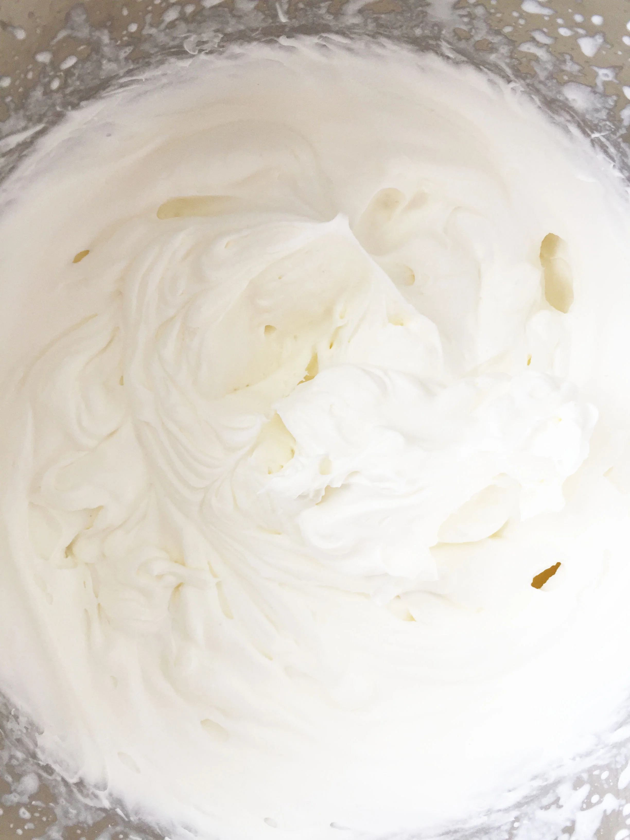 Using the whisk attachment, beat on the highest speed for 3 1/2-5 minutes.