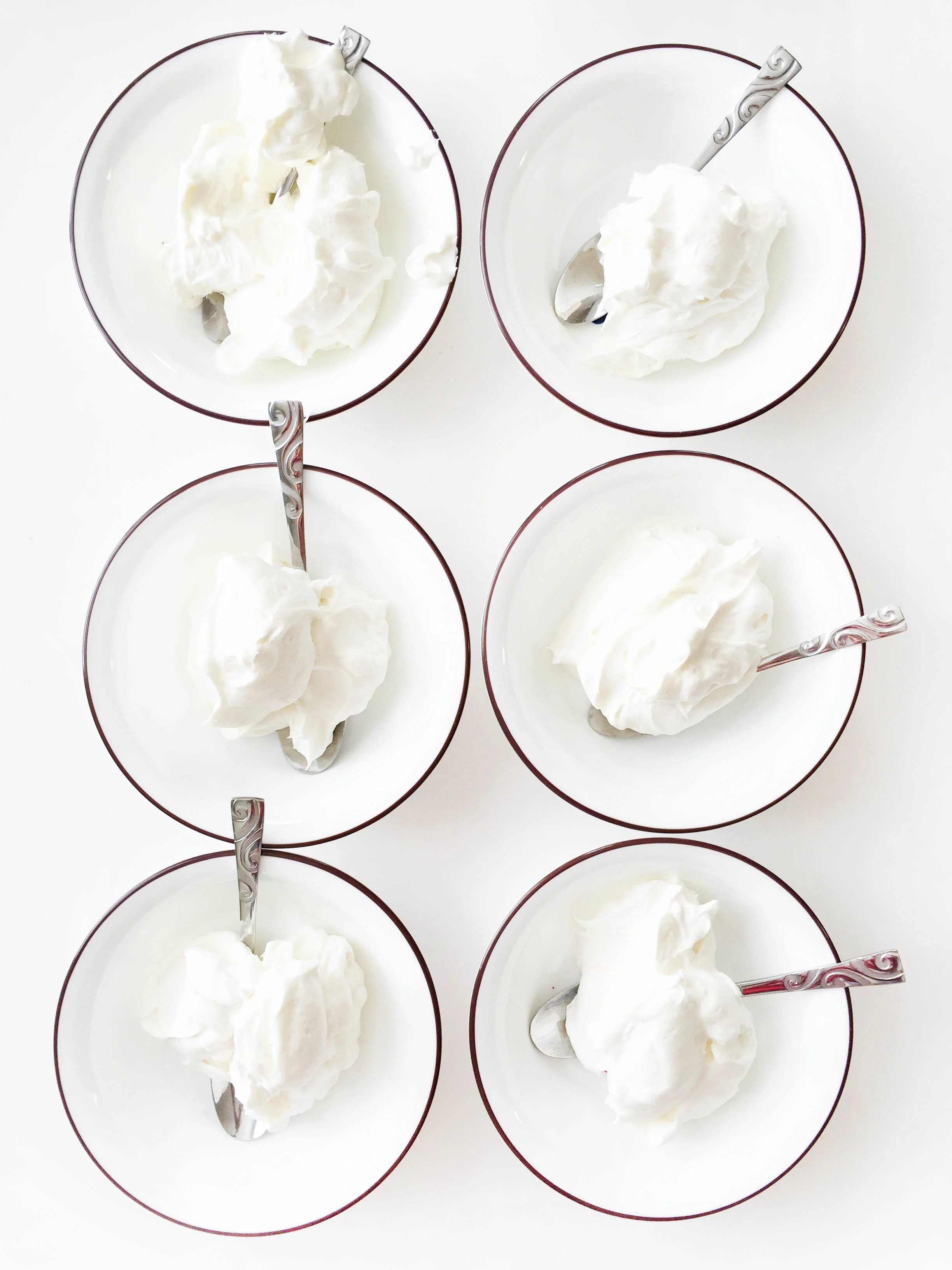 Whisk together the 1/2 Box Vanilla Cake Mix, 1/2 C. Water, 3 Oz. Plain Fat Free Greek Yogurt, and 1 Egg White until no lumps remain.