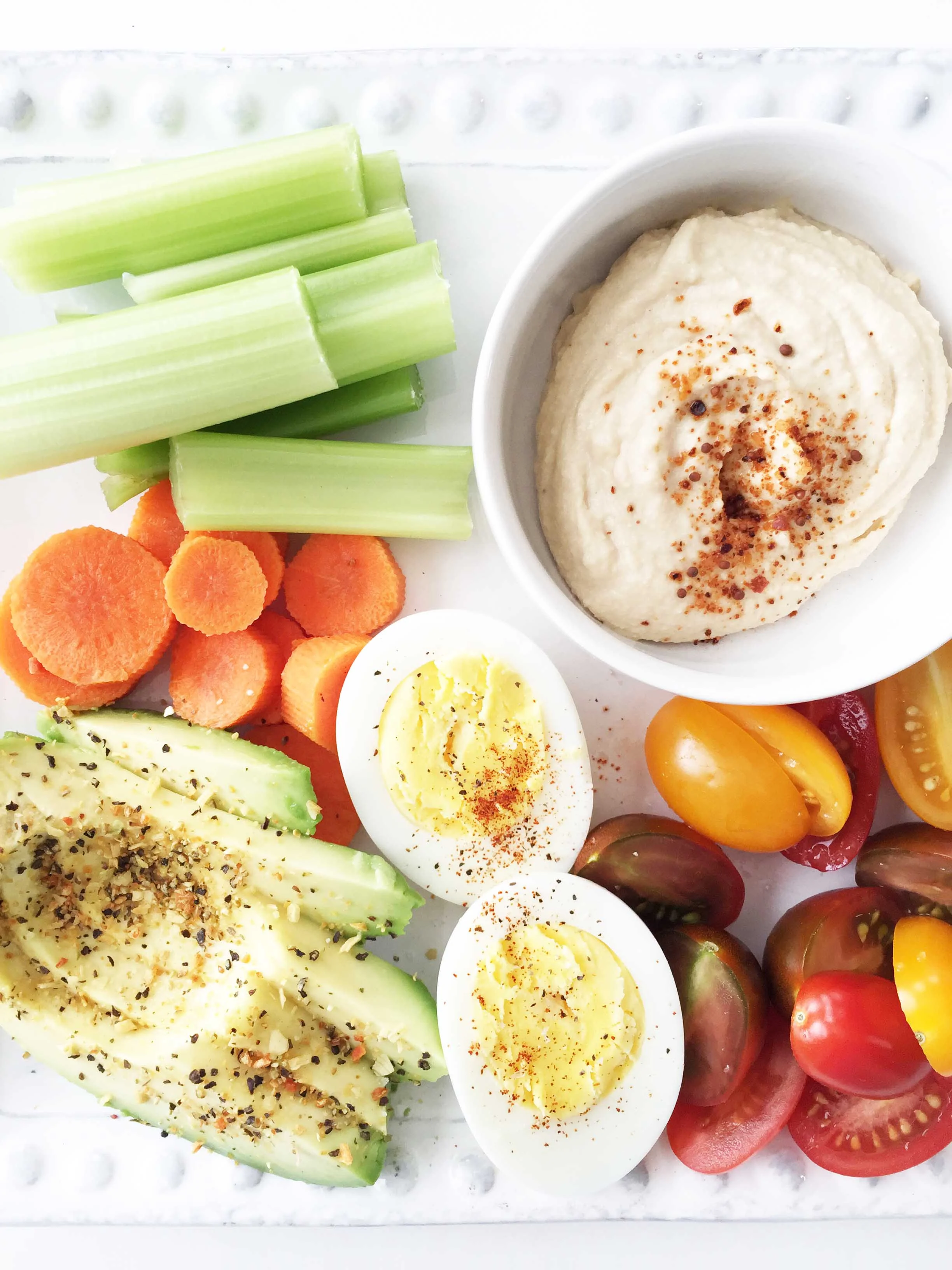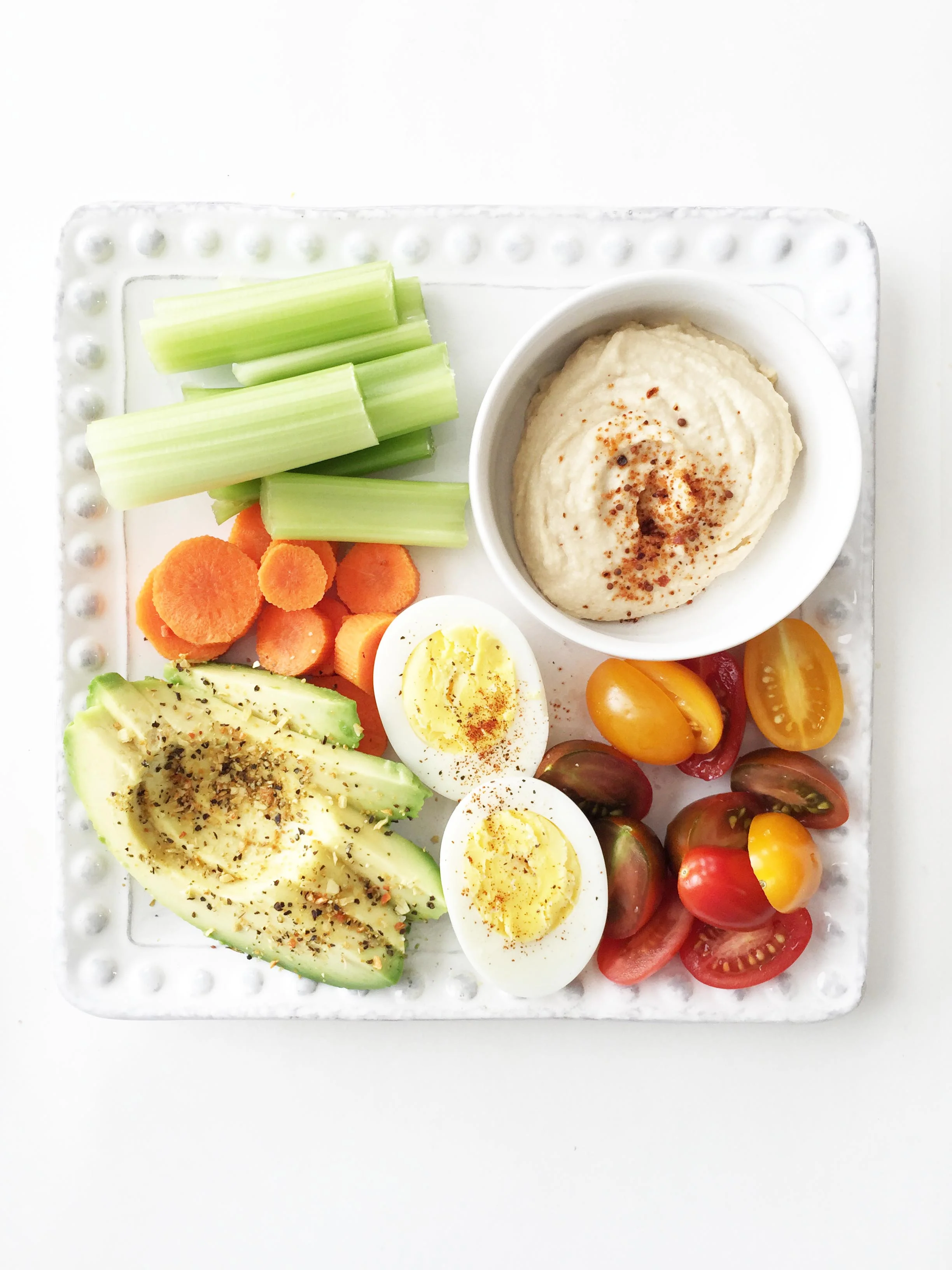 Today I decided to go with raw vegetables/fruits, lots of seasoning, hummus and a hardboiled egg. Initially I wasn't planning on adding the egg in there, but when it came down to it, I just thought it gave this otherwise snack seeming meal more sustenance and protein too!