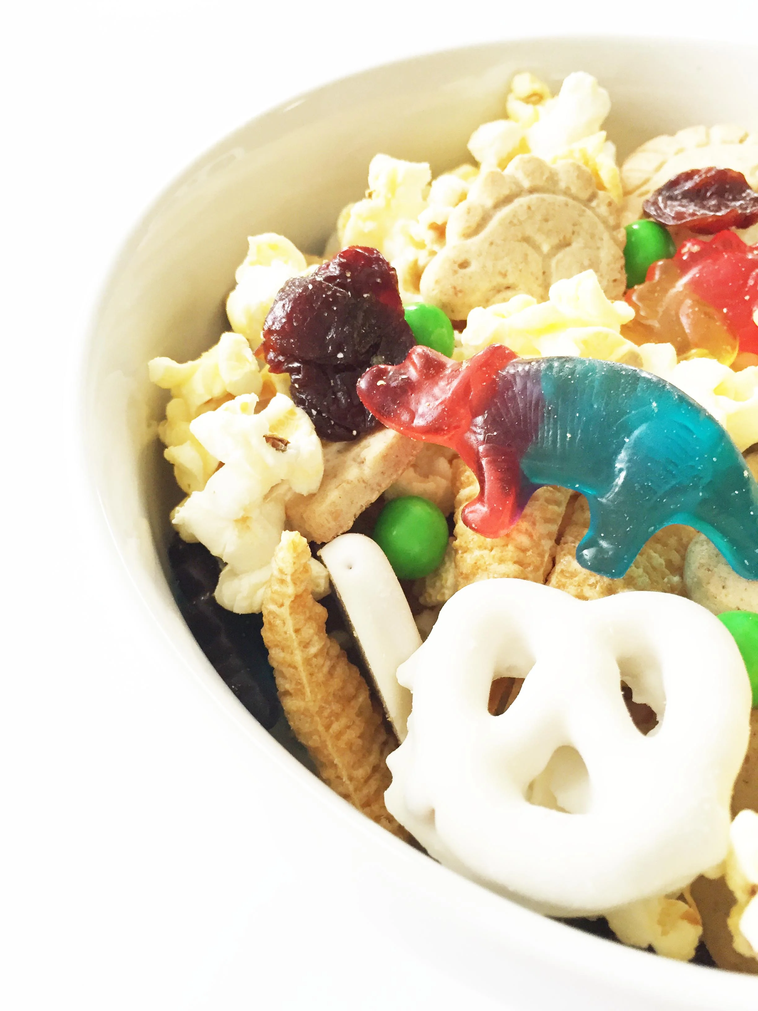 This Dinosaur Snack Mix is full of sweet and salty add-ins to make those little (and big) mouths happy during the movie! Plus, I've added in some better-for-you tidbits that make for a great blend of what you want and what you need for yourself and your little ones alike...