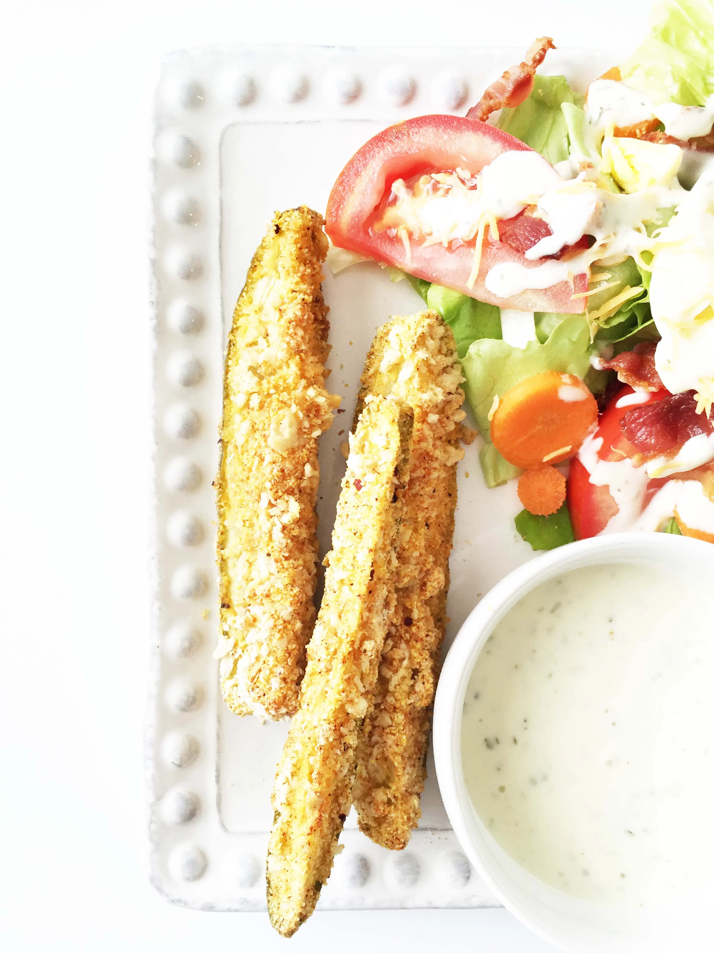 I’ve tried my hand at faux fried pickles, by way of baking before. And while they pickles turned out pretty good, they were still missing a bit of that crunch factor. …As most faux fried things tend too. So, now that there’s an air fryer in the house I thought it was the perfect time to air fry some pickles!…
