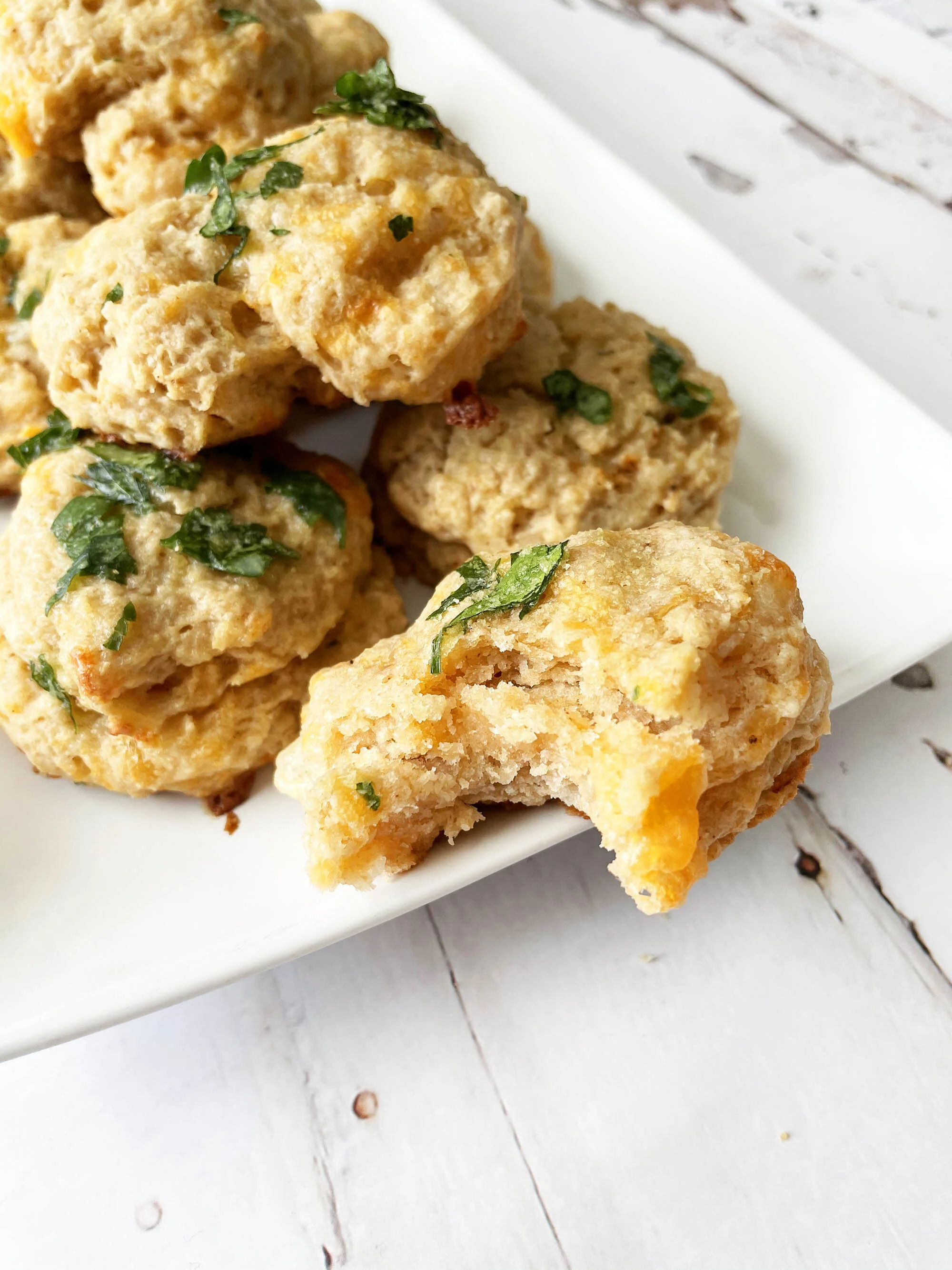 It’s the first day of summer vacation. I officially have a middle schooler! That’s just crazy to me. You know what else is crazy to me? How easy and cheesy these Healthified Cheddar Bay Biscuits are! You know what bay biscuits are, right? Those tasty crumbly cheesy biscuits they have at that popular seafood chain restaurant. These are my healthified take and those!