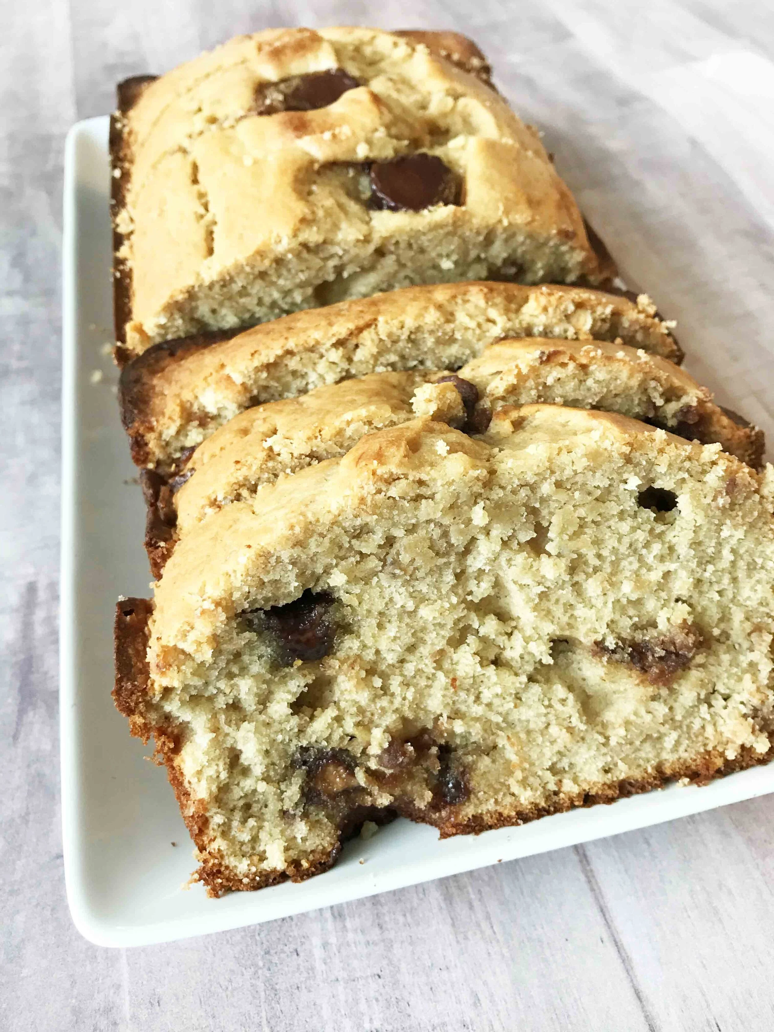 The batter itself is lightened up by way of plenty of mashed banana and some greek yogurt too. There’s also no actual sugar used in this bread. It’s made with natural sweeteners and blends. The end result is a light, fluffy, rich and delicious breakfast bite that is sure to impress…