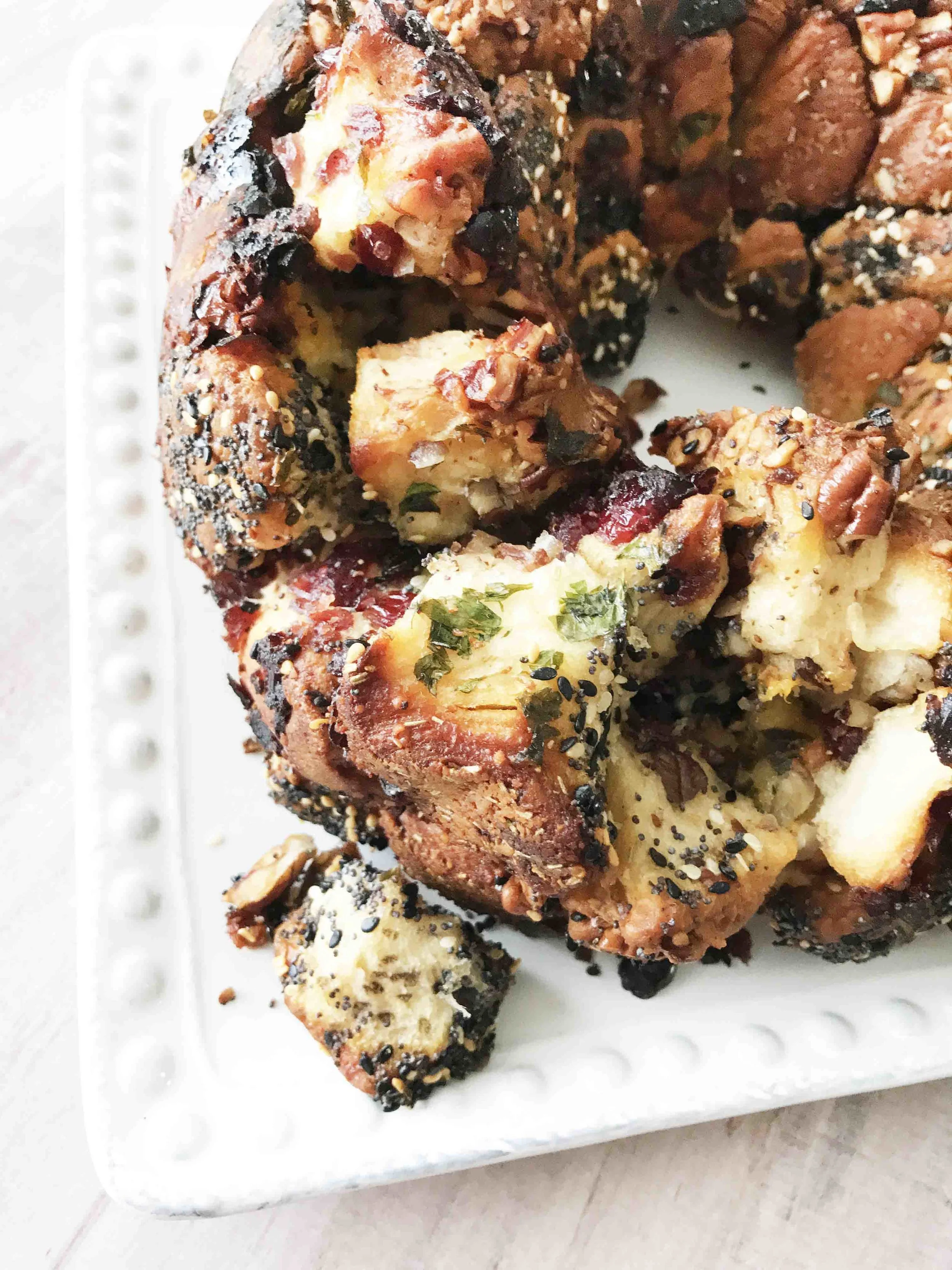In American, Appetizers, Game Day, Holiday, Kid Friendly, Meatless, Side Dishes, Snacks, Vegetarian, Winter Tags savory, cheese, monkey bread, monkeybread, parsley, herb, cranberry, poppy seed