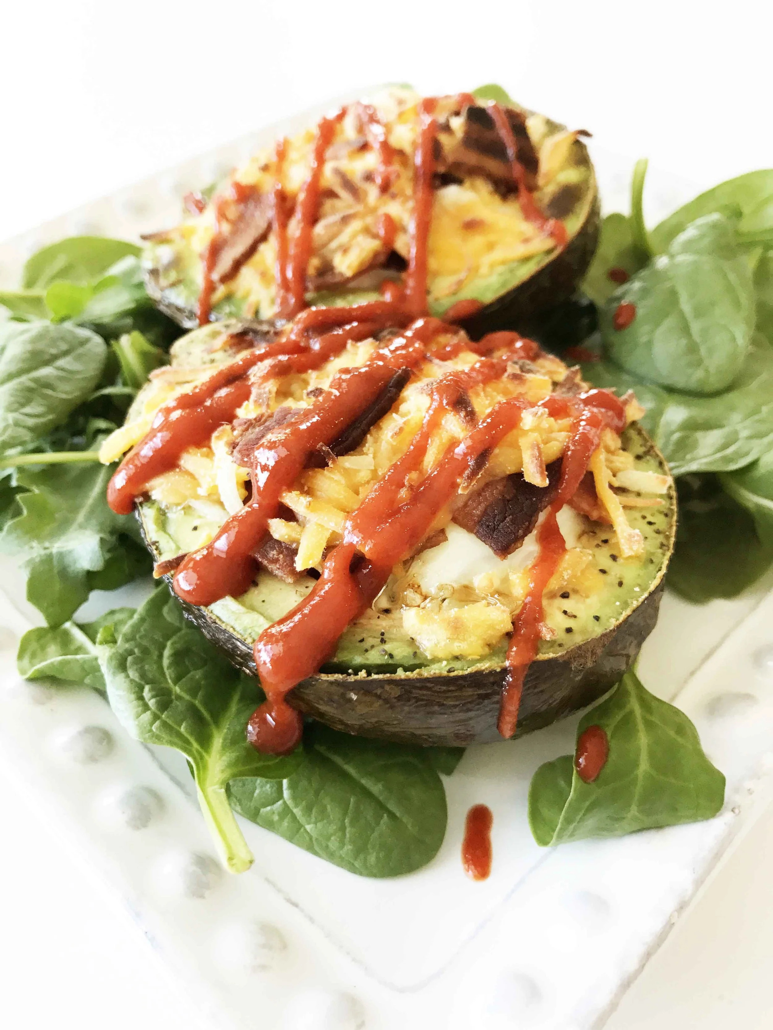 Who can say no to a warmed avocado with baked eggs, cheese, and bacon?
