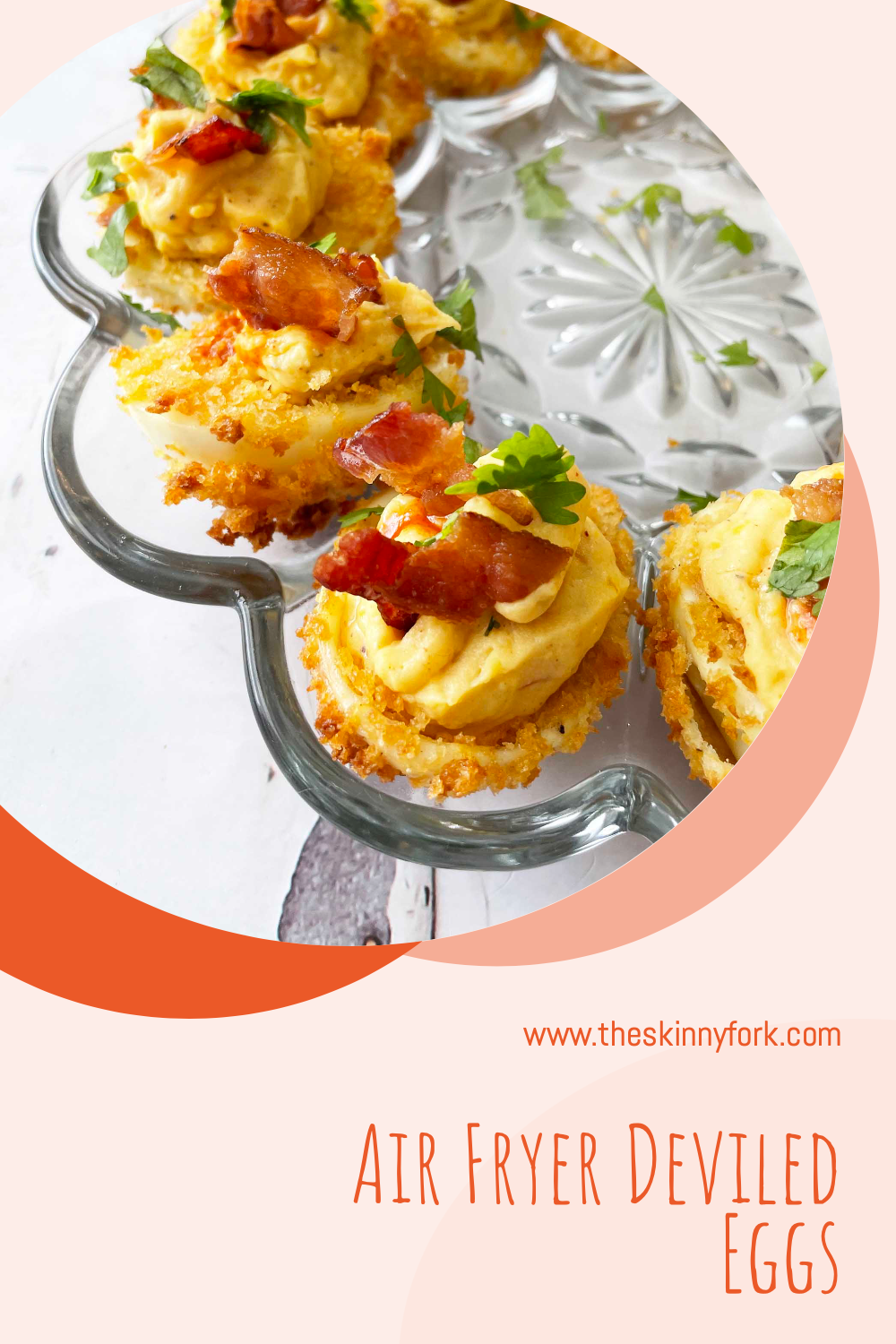 These Air Fryer Deviled Eggs are kept lightened up with just a few simple swaps, mainly being the mayonnaise for a light one, and regular bacon is replaced with a low sodium center cut bacon. Outside of that, these deviled eggs are pretty standard outside of also being battered and air fried to give that nice crunch on the outside.