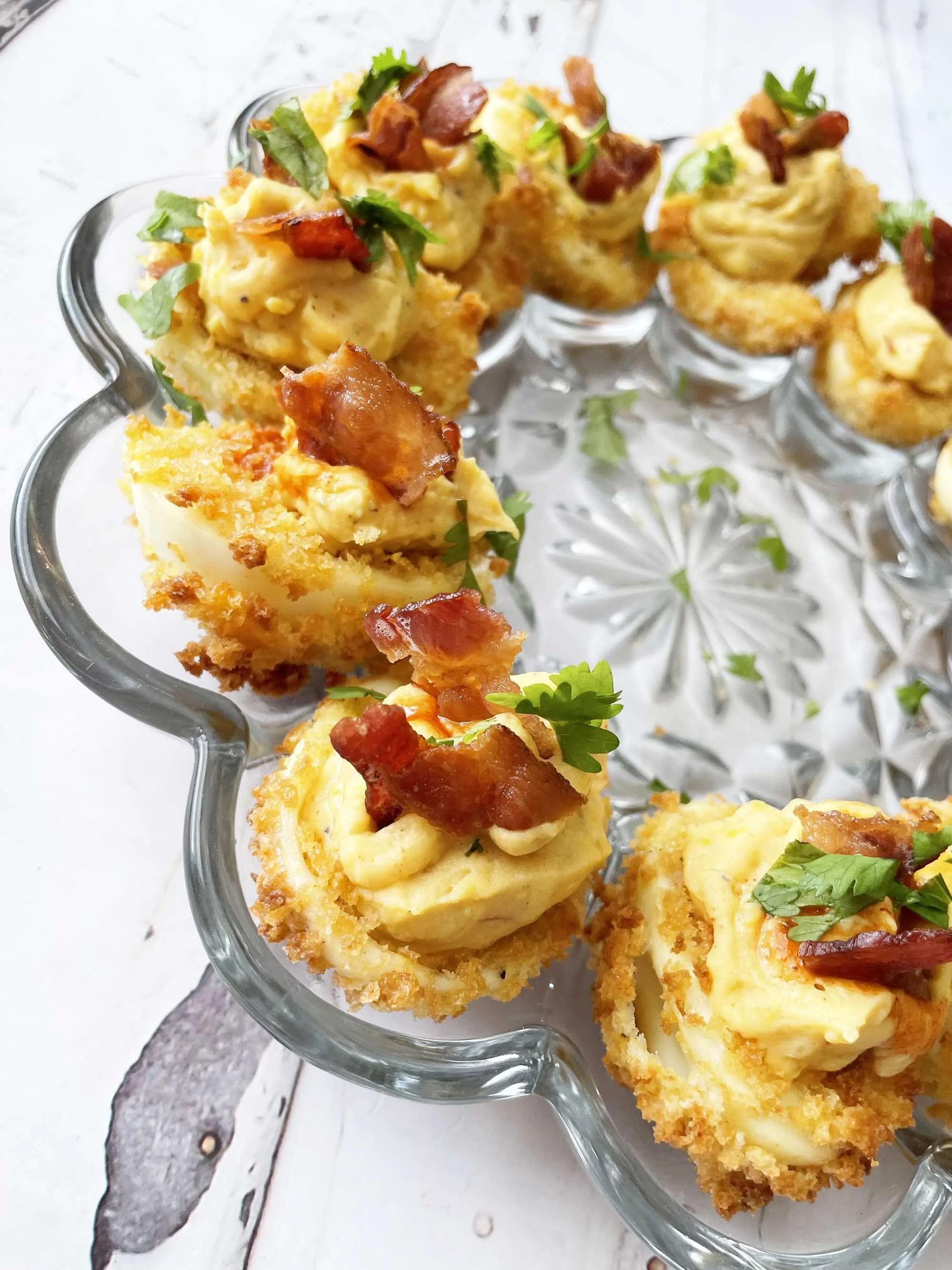 These indulgent delights combine the best of both worlds - the richness of traditional deviled eggs with the irresistible crunch of deep frying - without deep frying! The juxtaposition of textures and flavors in every bite is sure to leave you wanting more. Whether served as a playful appetizer or a crowd-pleasing snack, “deep fried” deviled eggs are guaranteed to be a hit at any gathering. So go ahead, dare to try something different and elevate your egg game with this innovative and decadent treat!