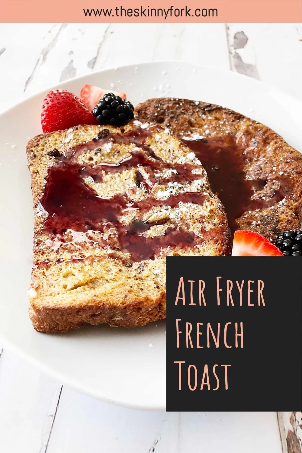 I topped my Air Fryer French Toast off with blueberry syrup and a dusting of powered sugar with some fresh berries on the side.