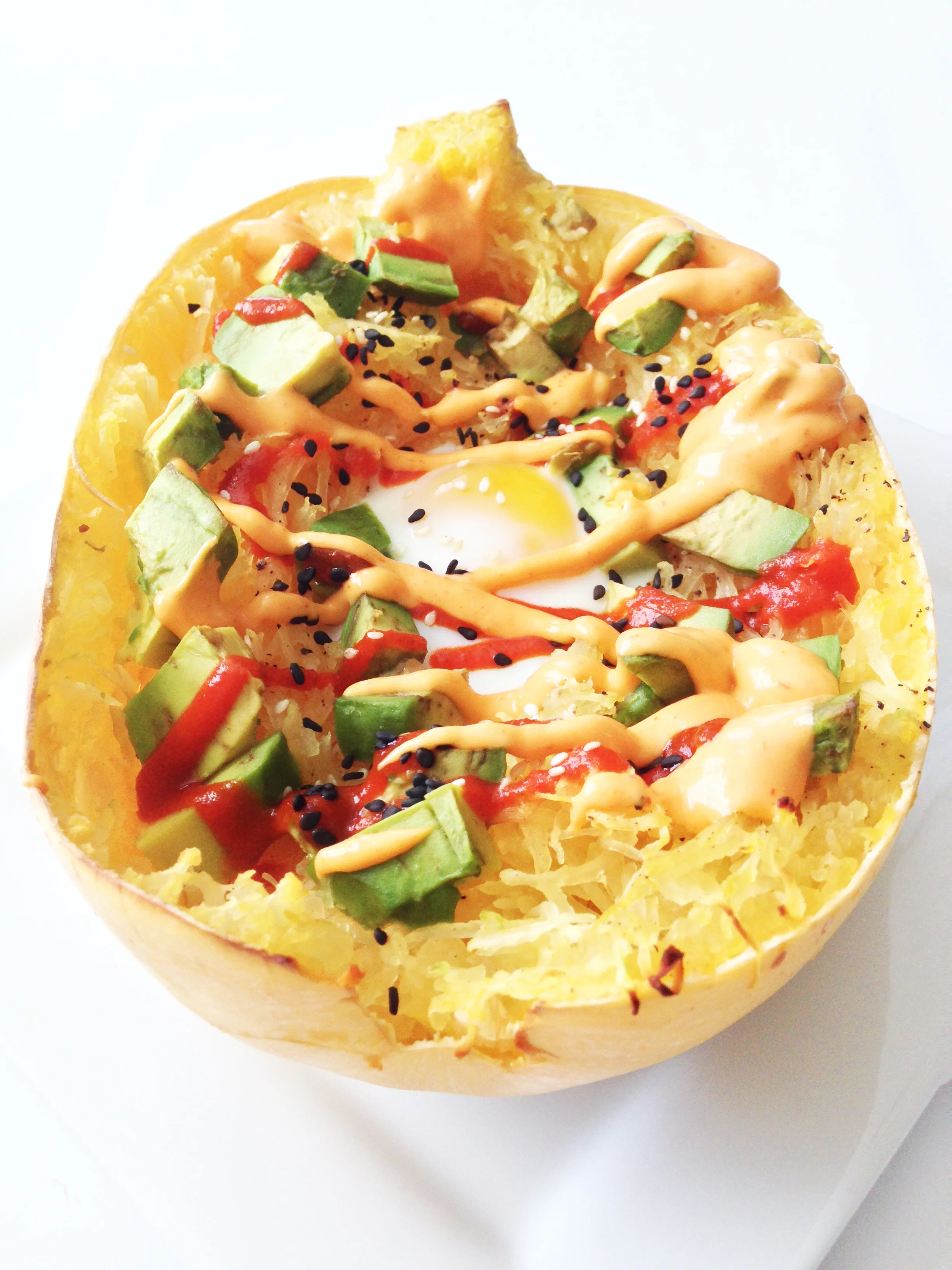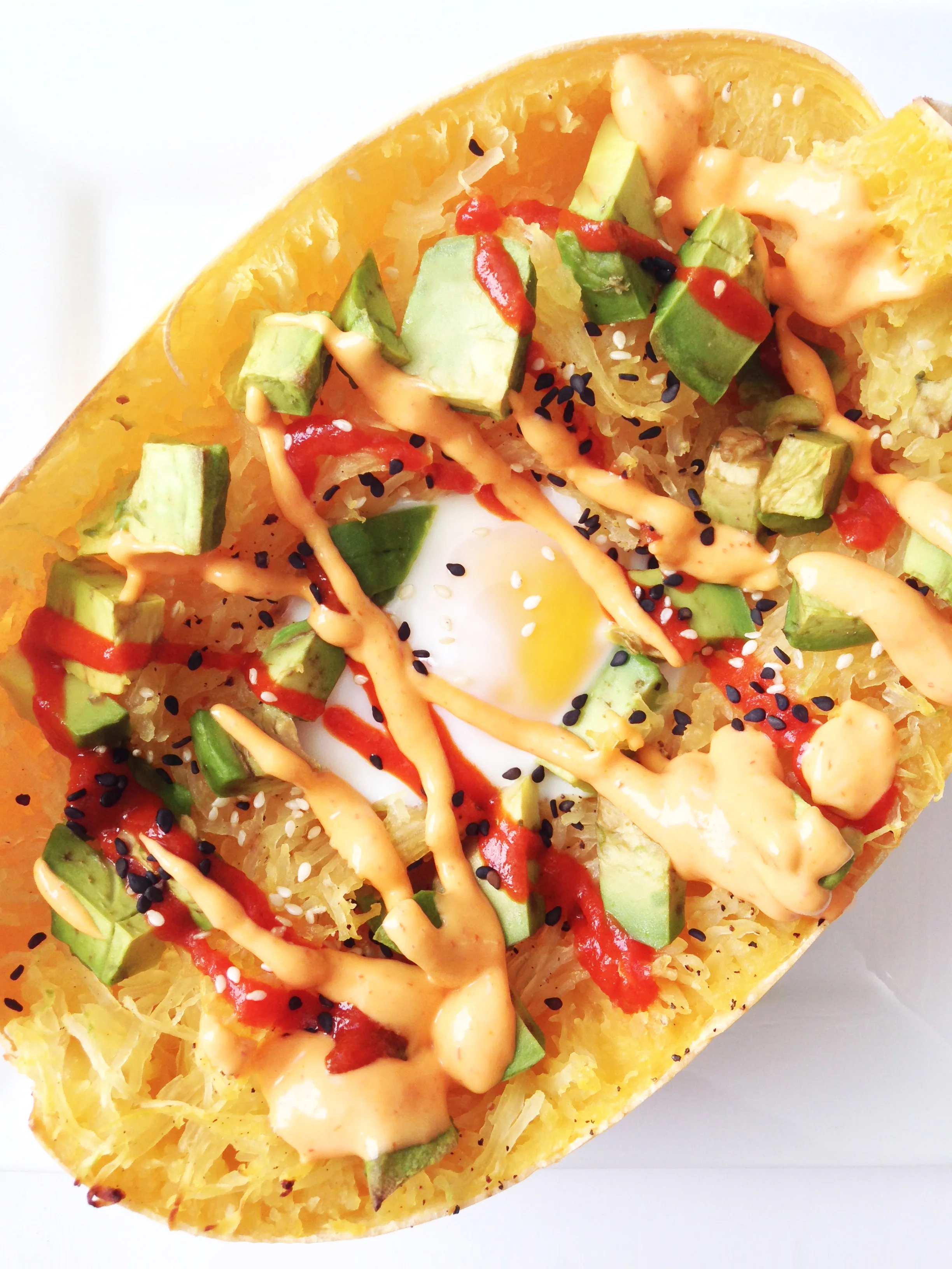Avocado & Egg Spaghetti Squash Boats