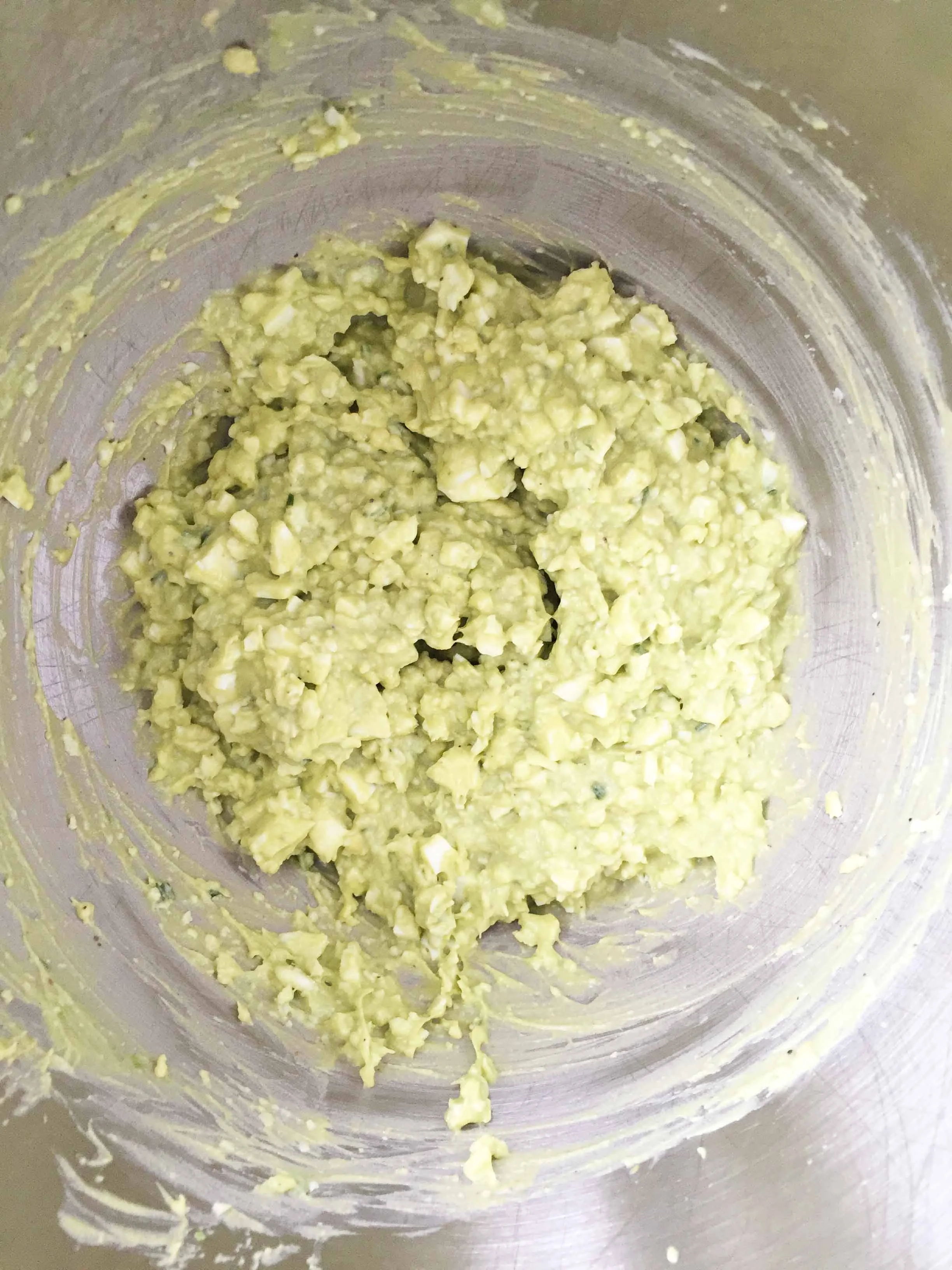 I like mine to be creamy but with a few pieces of egg and avocado still found.