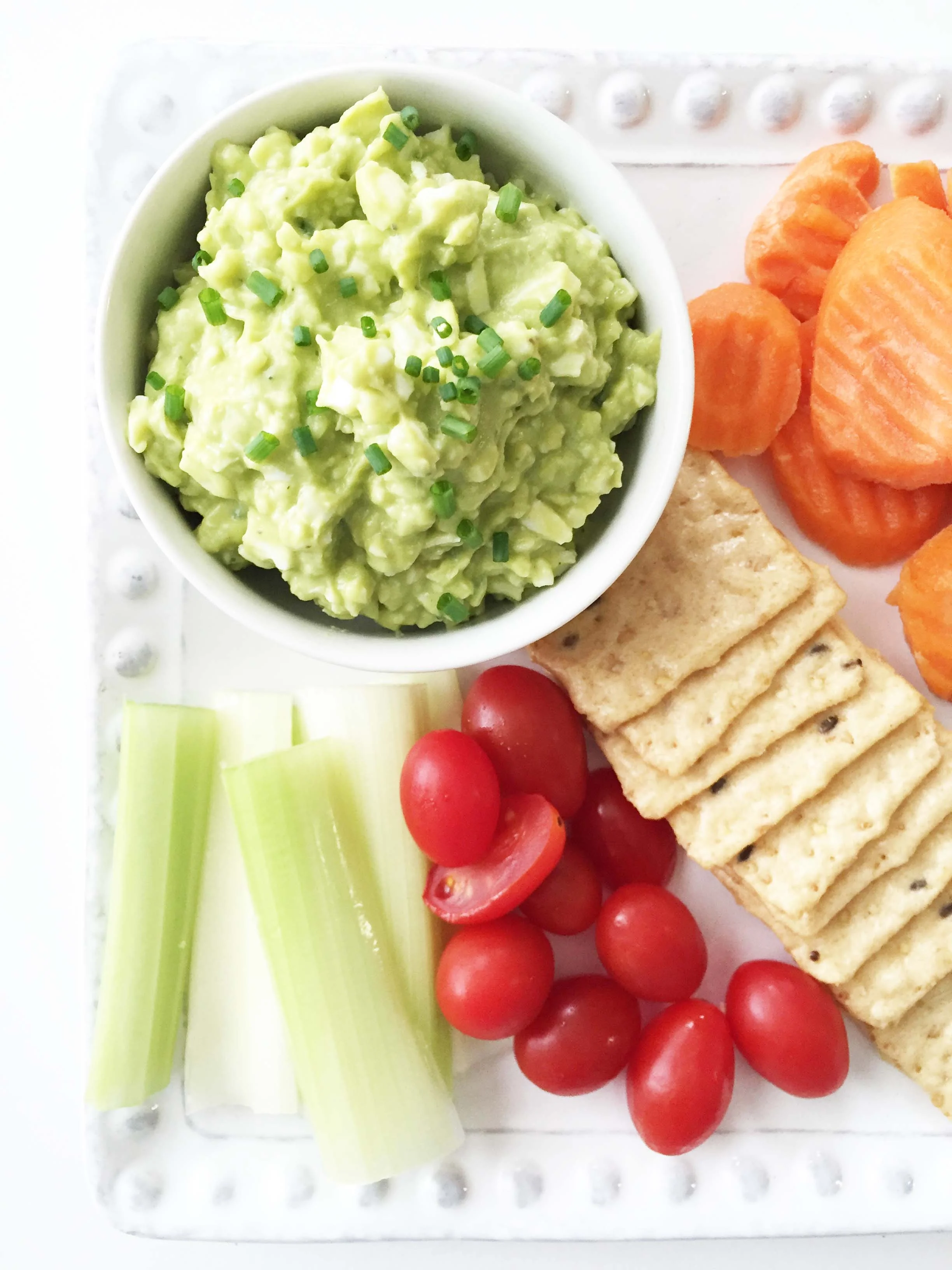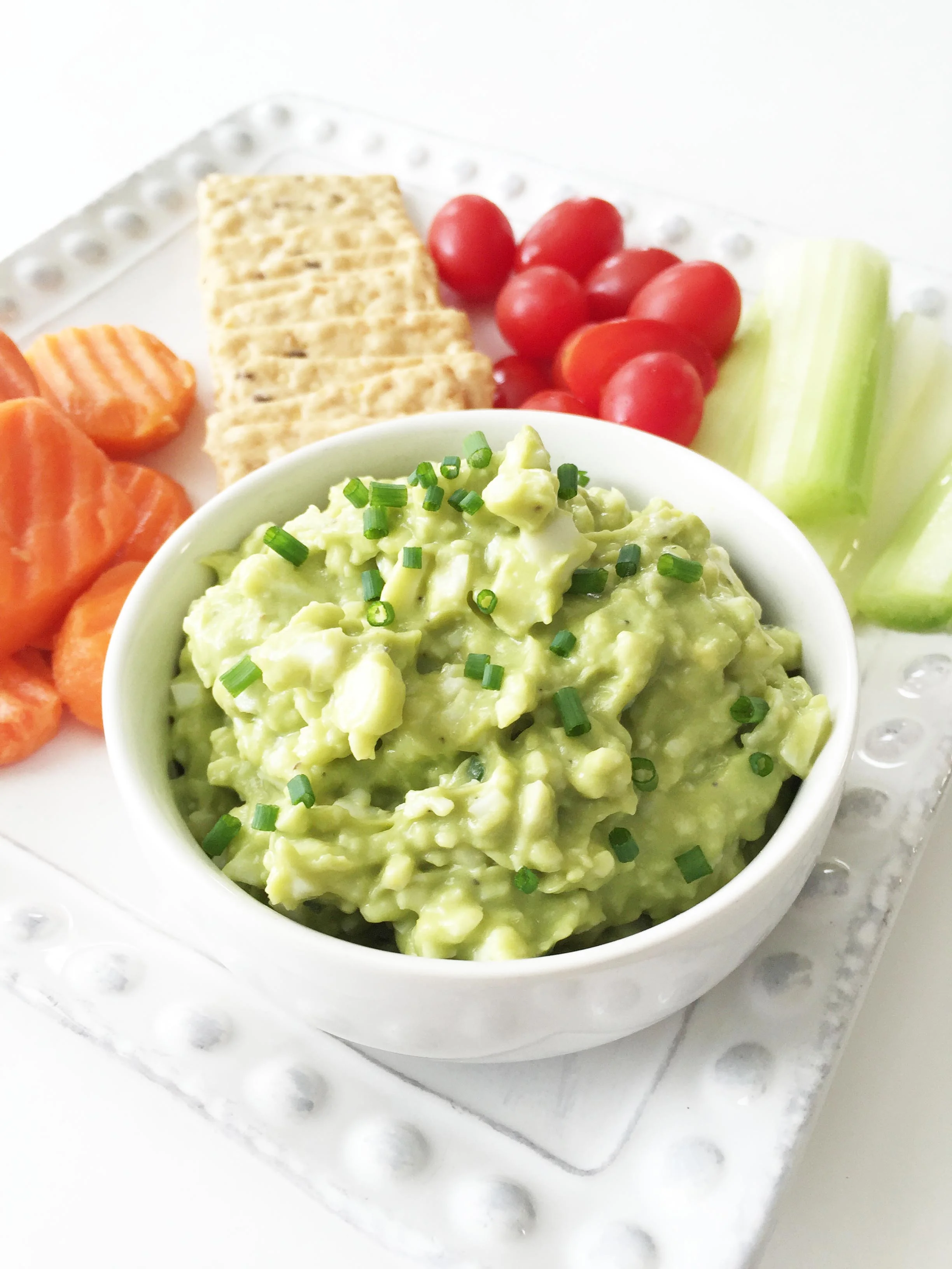 I served my avocado egg salad with multi-grain brown rice crackers and some fresh veggies for dipping and scooping. But,this would also be great on a sandwich or in any other way that you might use egg salad.