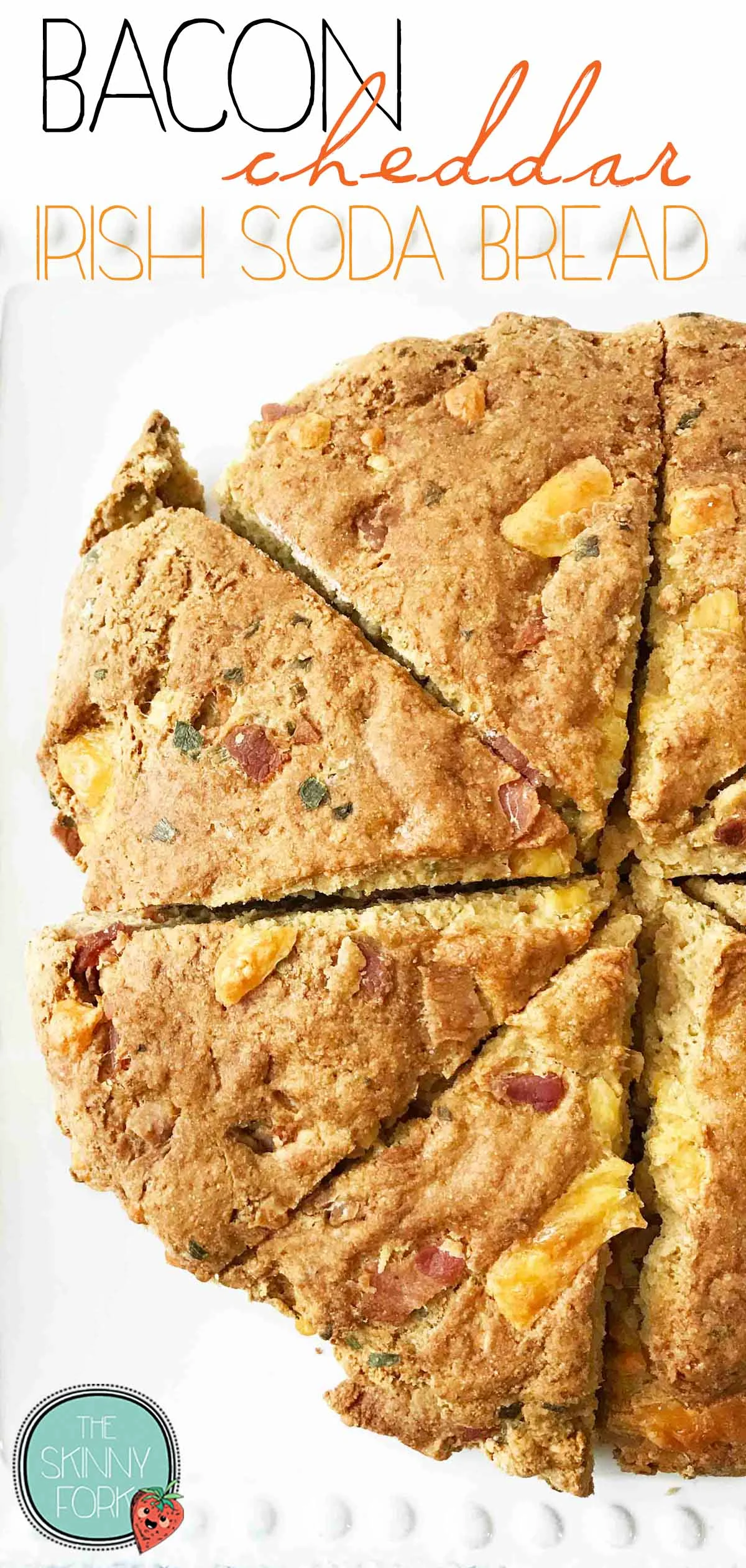 TheSkinnyFork.com A traditional Irish soda bread that is loaded up with bacon and cheddar for a fun little twist. Perfect for soaking up soups and stews! Prep Time: 10 Minutes • Cook Time: 30 Minutes