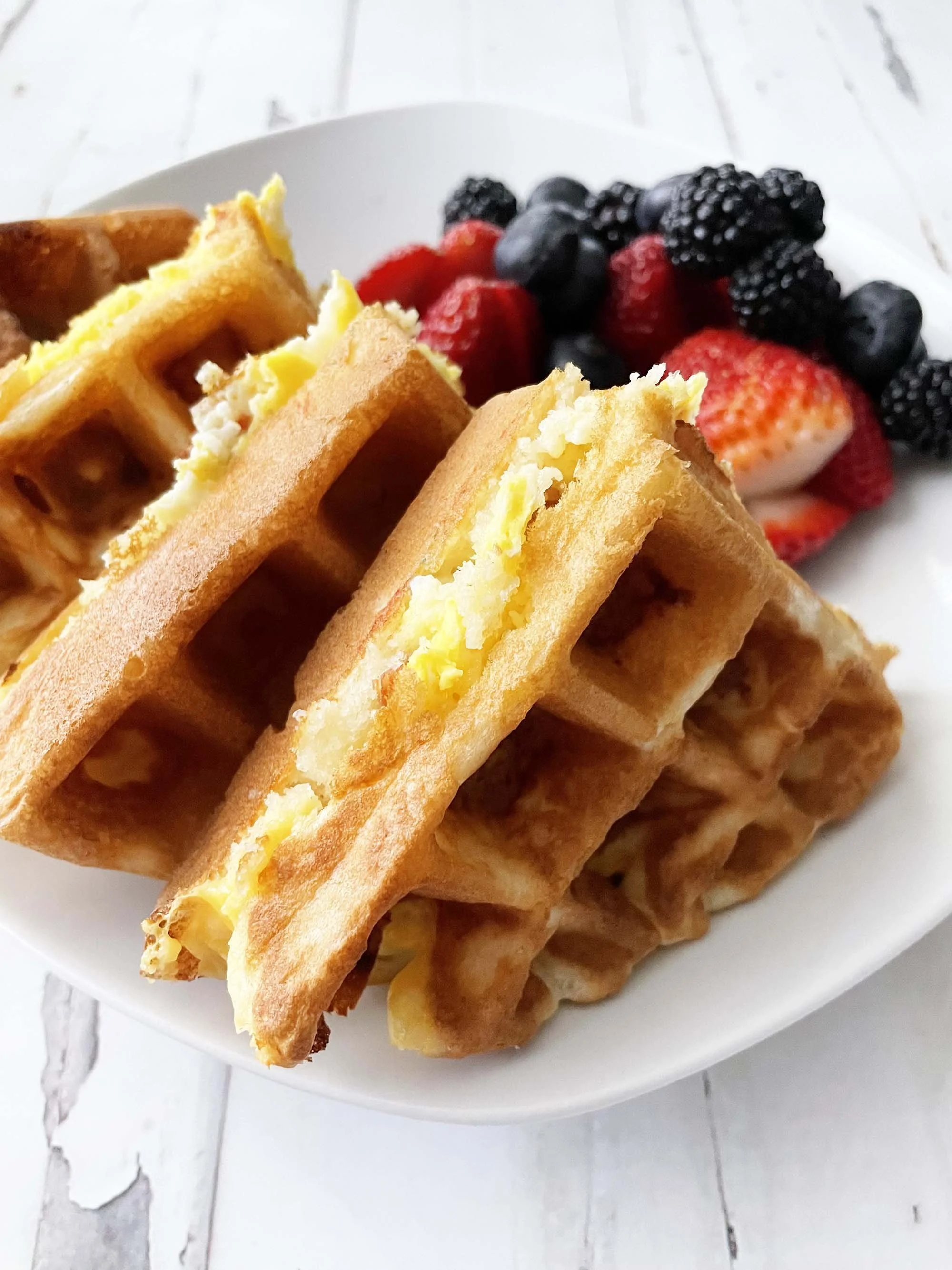 Are you ready to revolutionize your breakfast game? Say hello to my Bacon, Egg & Cheese Waffle – a quirky twist on a classic favorite that will leave your taste buds dancing with joy! Crispy bacon, gooey melted cheese, and a perfectly cooked egg stuffed in the middle of fluffy, golden waffle goodness. Each bite is a delightful mix of savory and sweet, with the satisfying crunch of the waffle adding an unexpected twist to your morning routine.