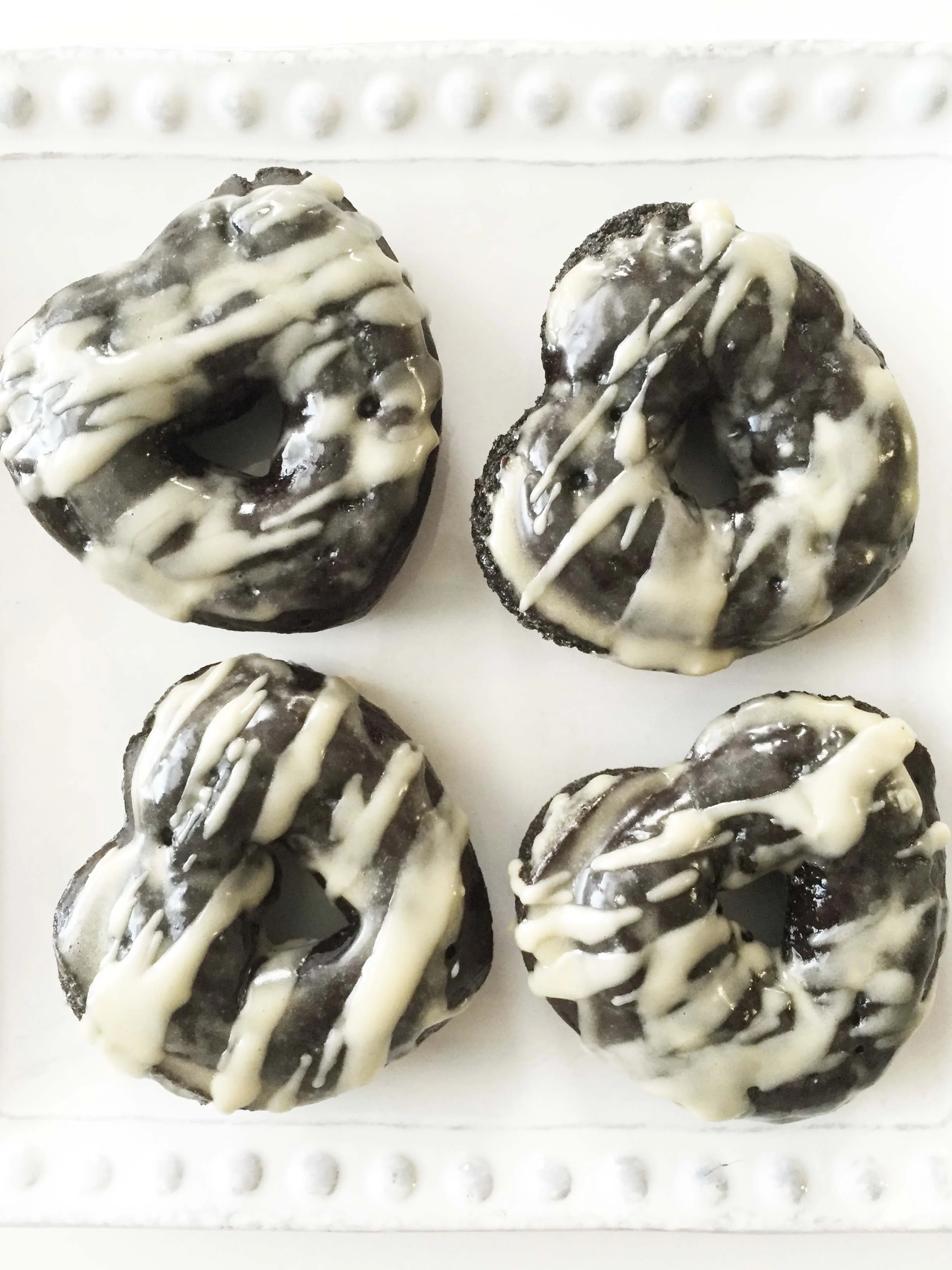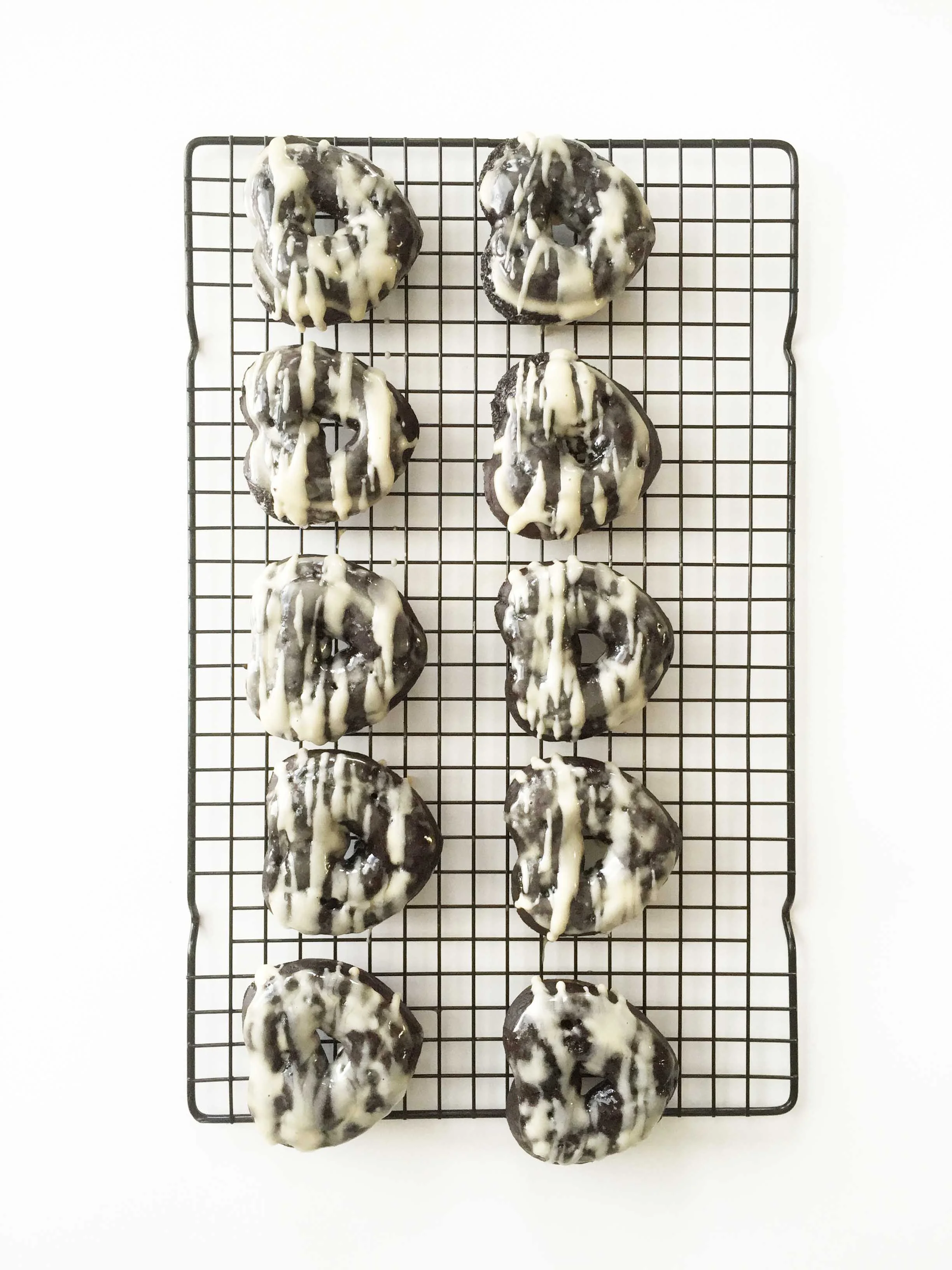 Once the donuts are completely cooled, drizzle the glaze over the tops of them or dip them straight into the glaze; whichever you're more comfortable with!