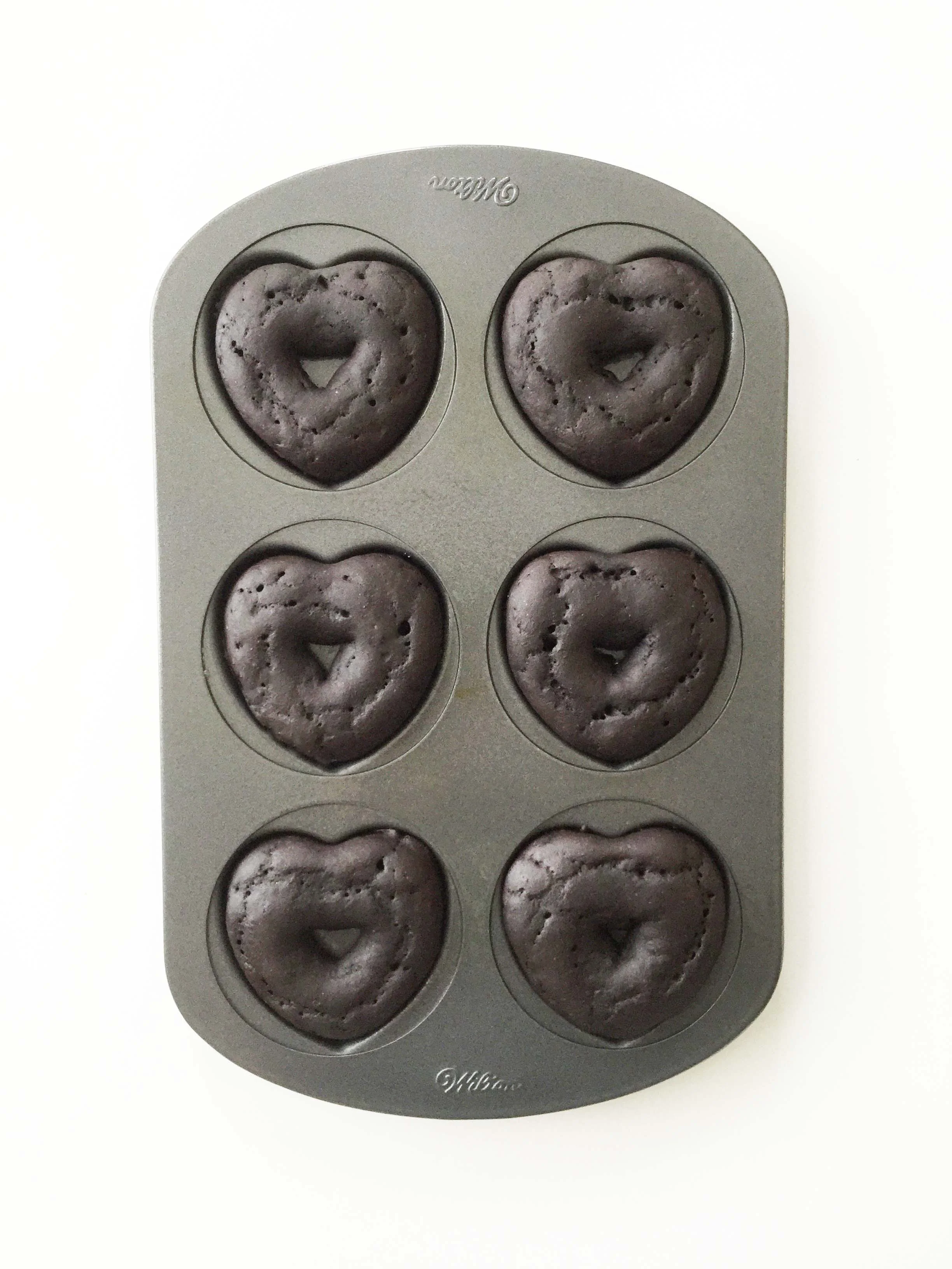 Place the pan into the preheated oven and bake for about 10 minutes or until an inserted toothpick comes out clean from the donuts.