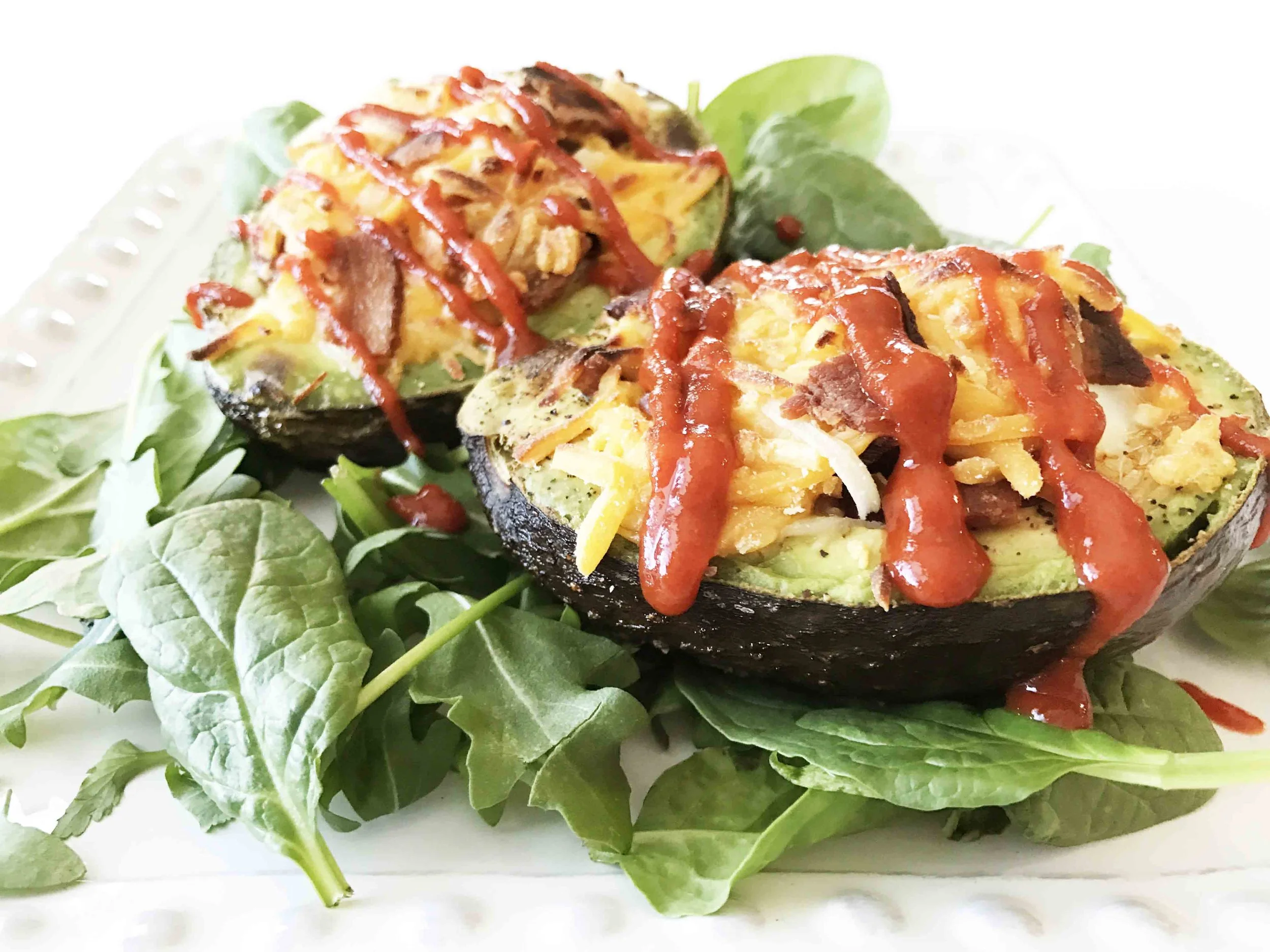 Who can say no to a warmed avocado with baked eggs, cheese, and bacon?
