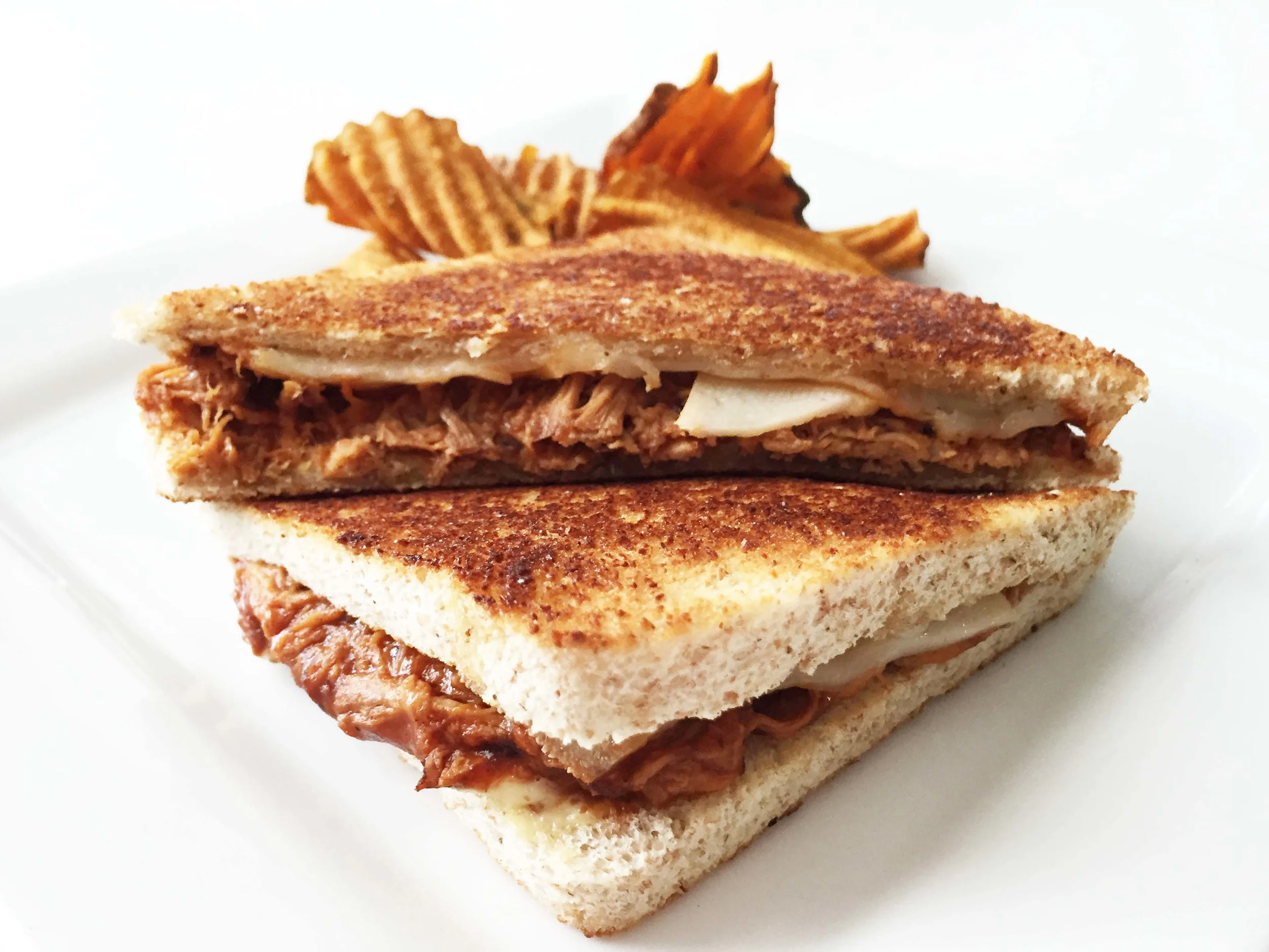 Here in Texas, we are all about our BBQ. I think that we will just about put BBQ meat in anything, sandwich, taco, casserole, you name it - we put BBQ in it. A few weeks ago I was at a local movie theater here in Austin which was running a special in July for a pulled pork grille cheese. They were all out of one, so I didn't get to order it, but they did have a pre-show commercial that came on the screen showing what all went into the sandwich.