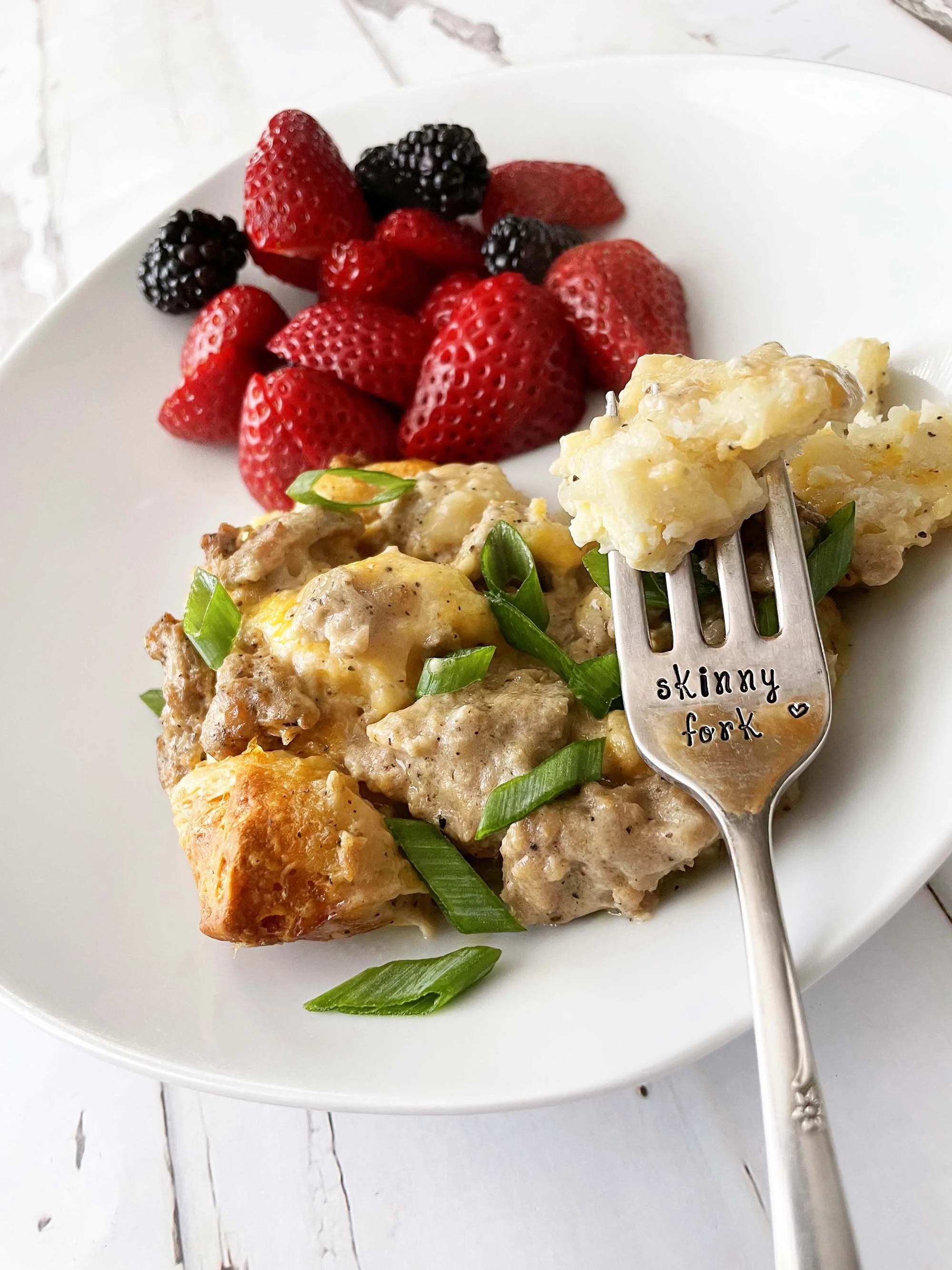 Several years back I whipped up this wonderful breakfast casserole for myself for Mother’s Day. It’s so easy almost anyone could make it for the wonderful mother in their life. This breakfast (or brunch) casserole is full of the homestyle flavors of biscuits and gravy, but lightened up to give mom a guilt free meal!