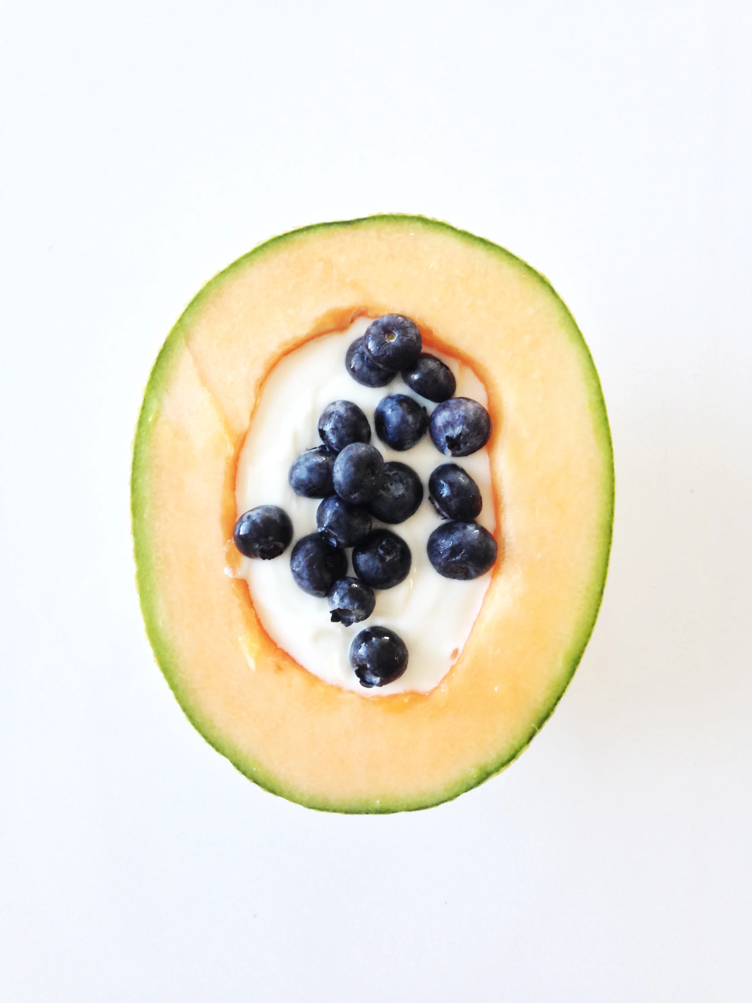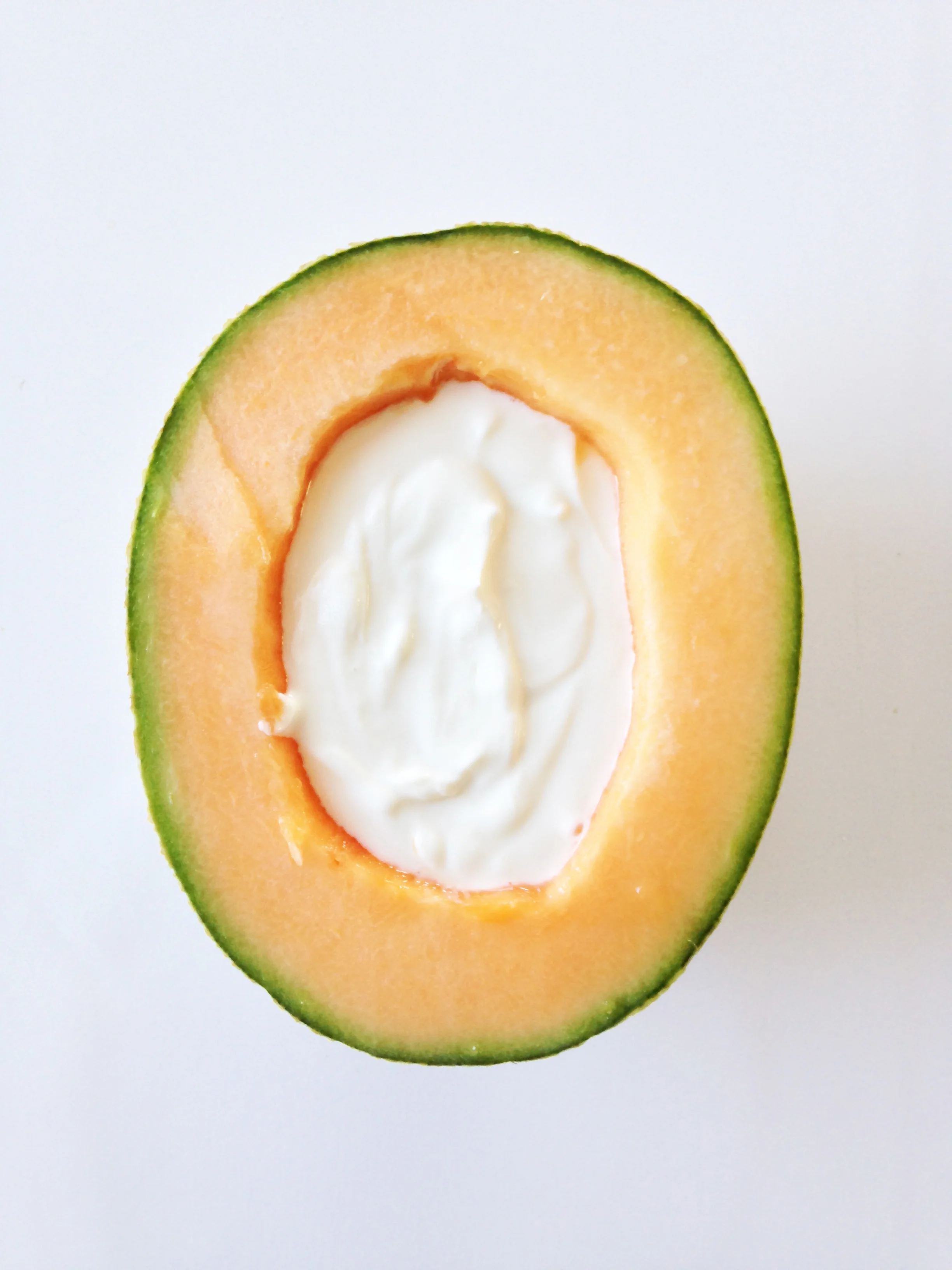 Fill the cantaloupe bowl with the yogurt.