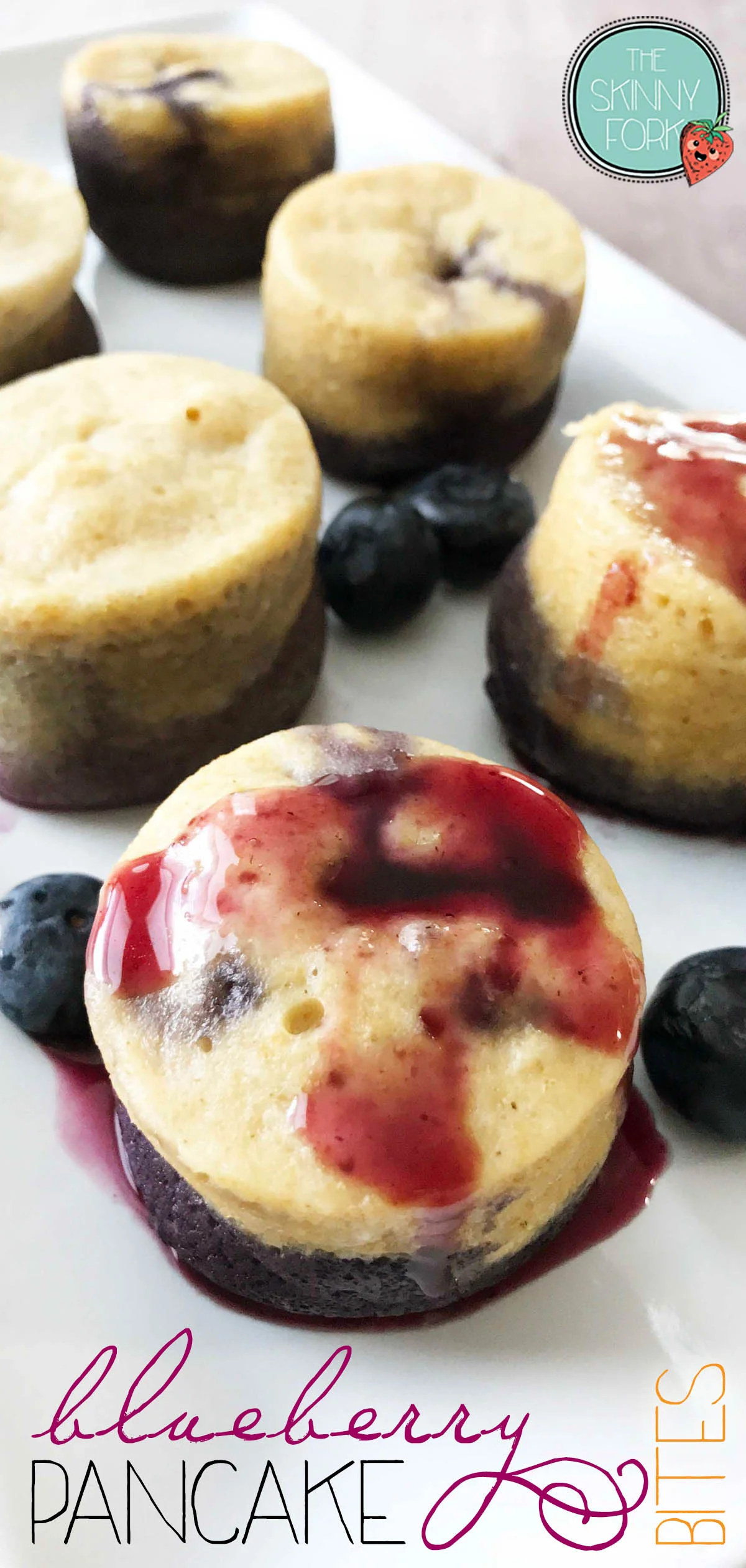 I made these Blueberry Pancake Bites a little bit more healthy conscious with using a protein packed pancake mix and loading them up with plenty of big beautiful blueberries.
