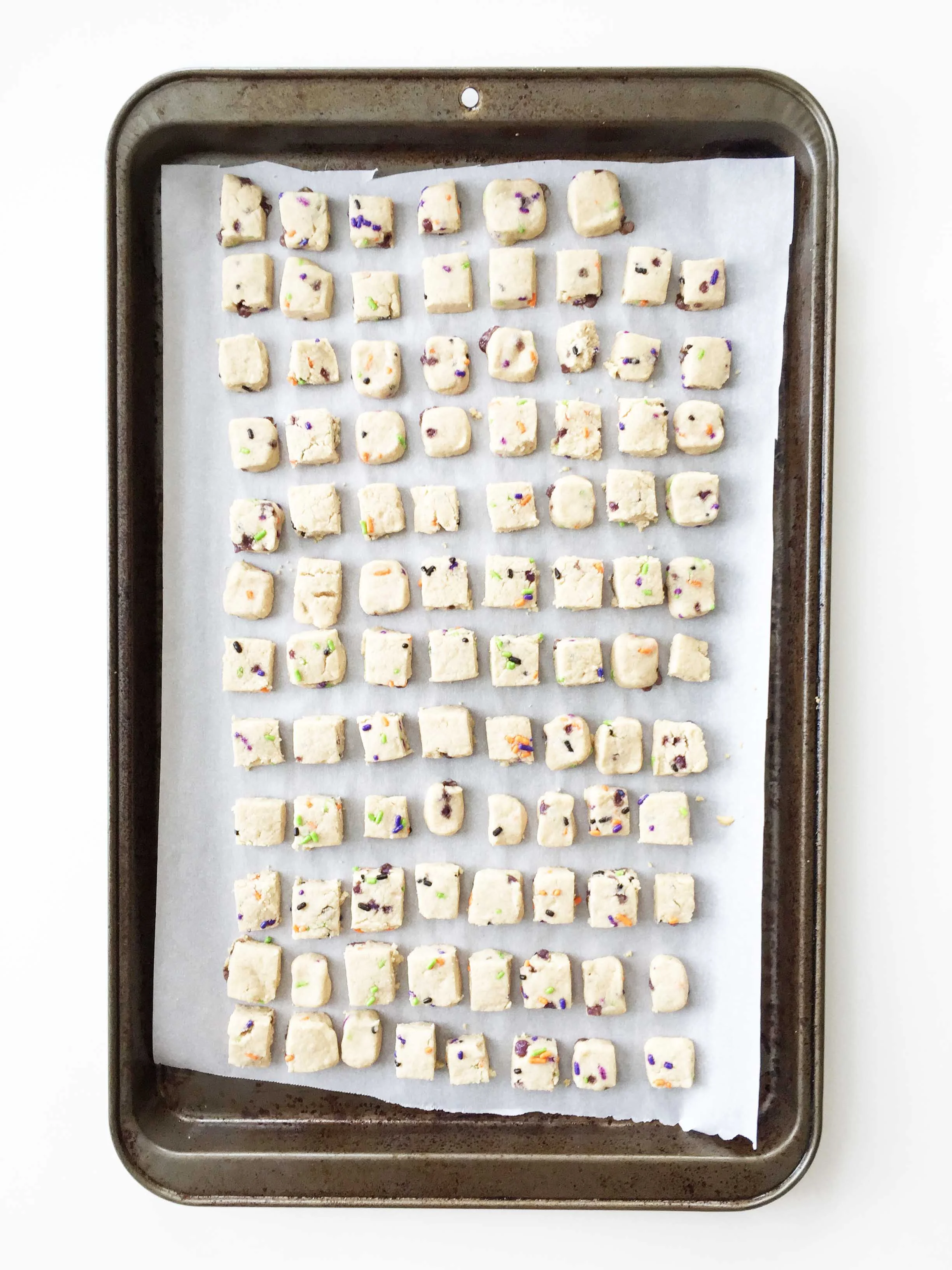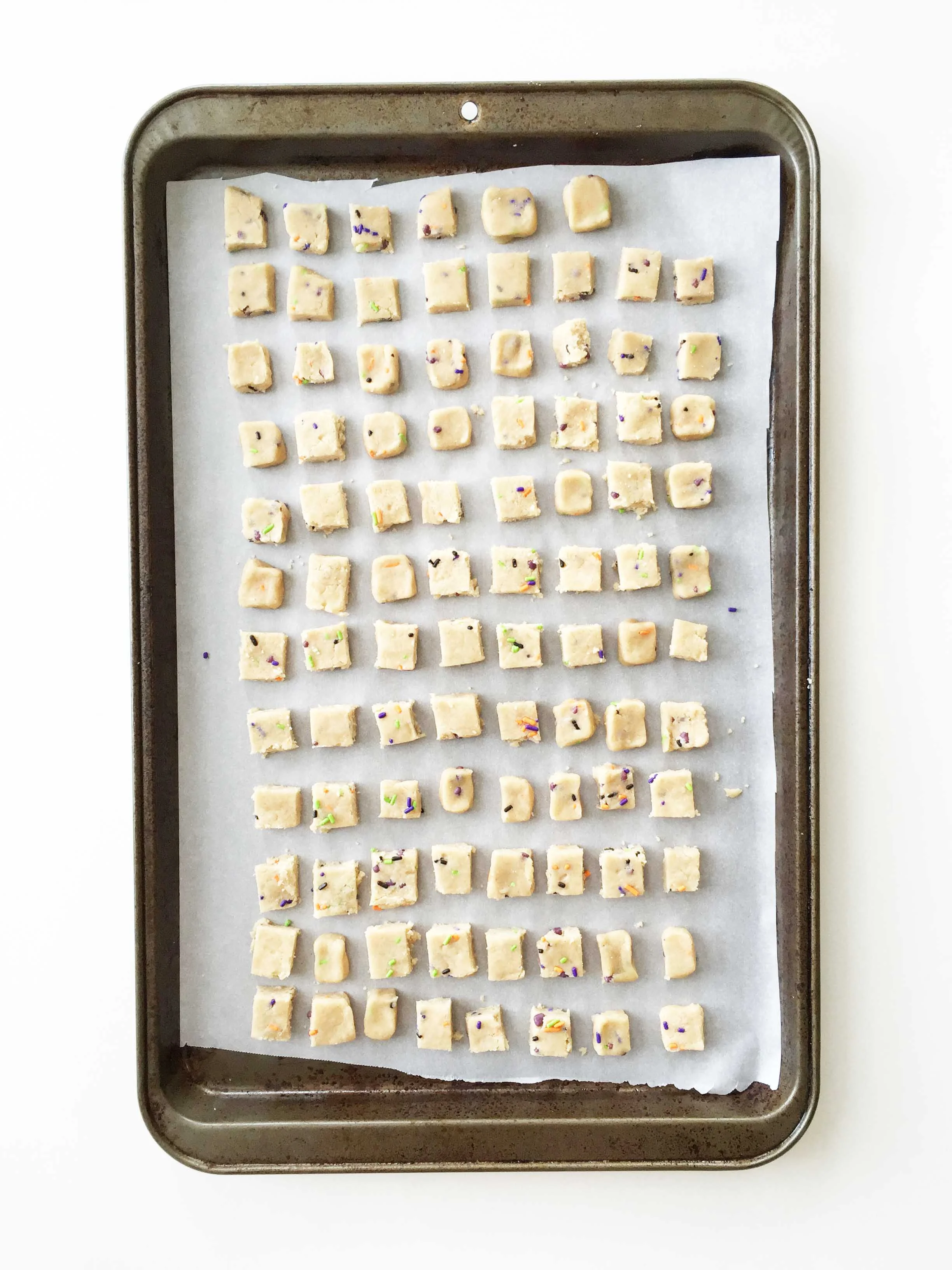 Set aside and use a pizza cutter to cut the dough into even squares, just under an inch in size.