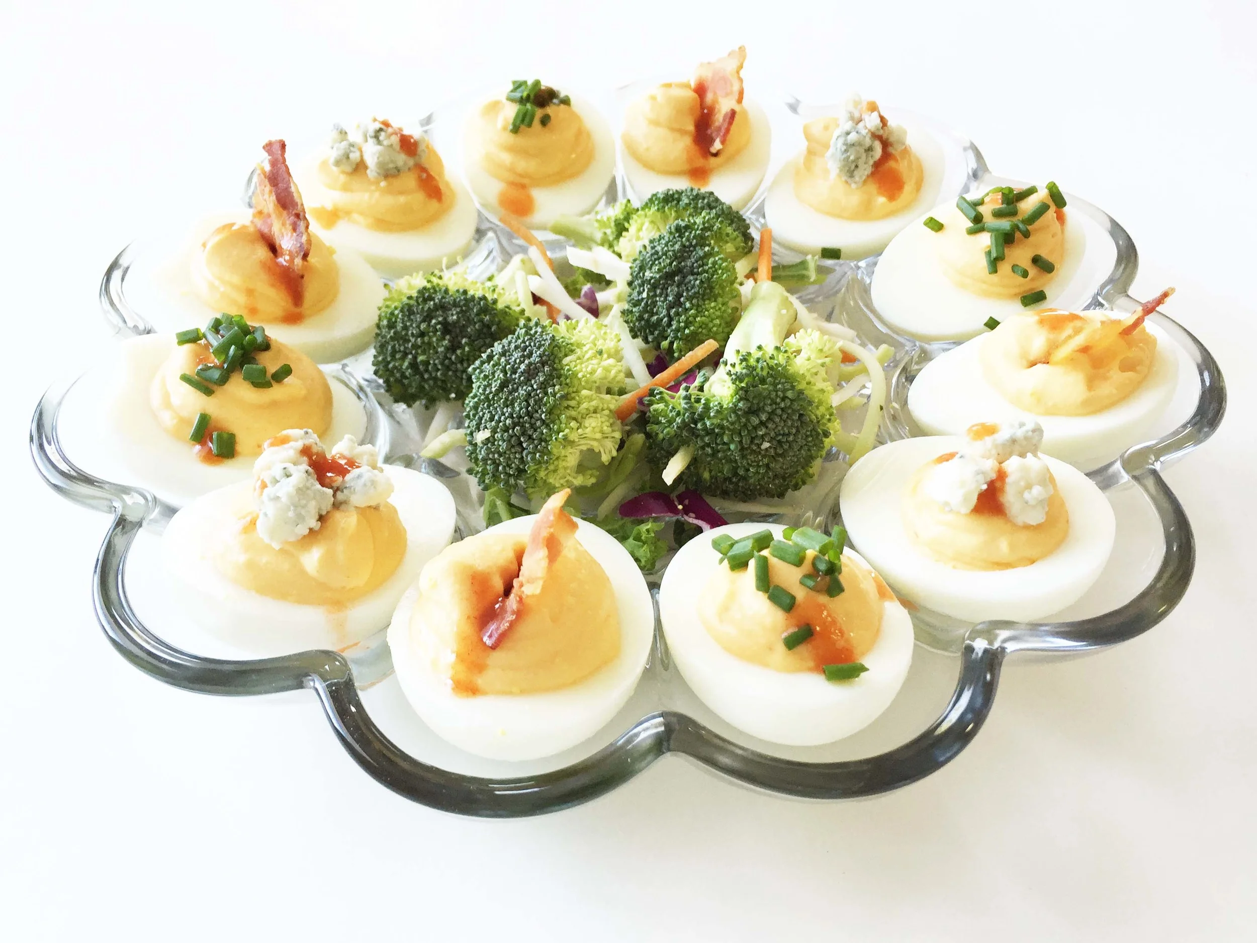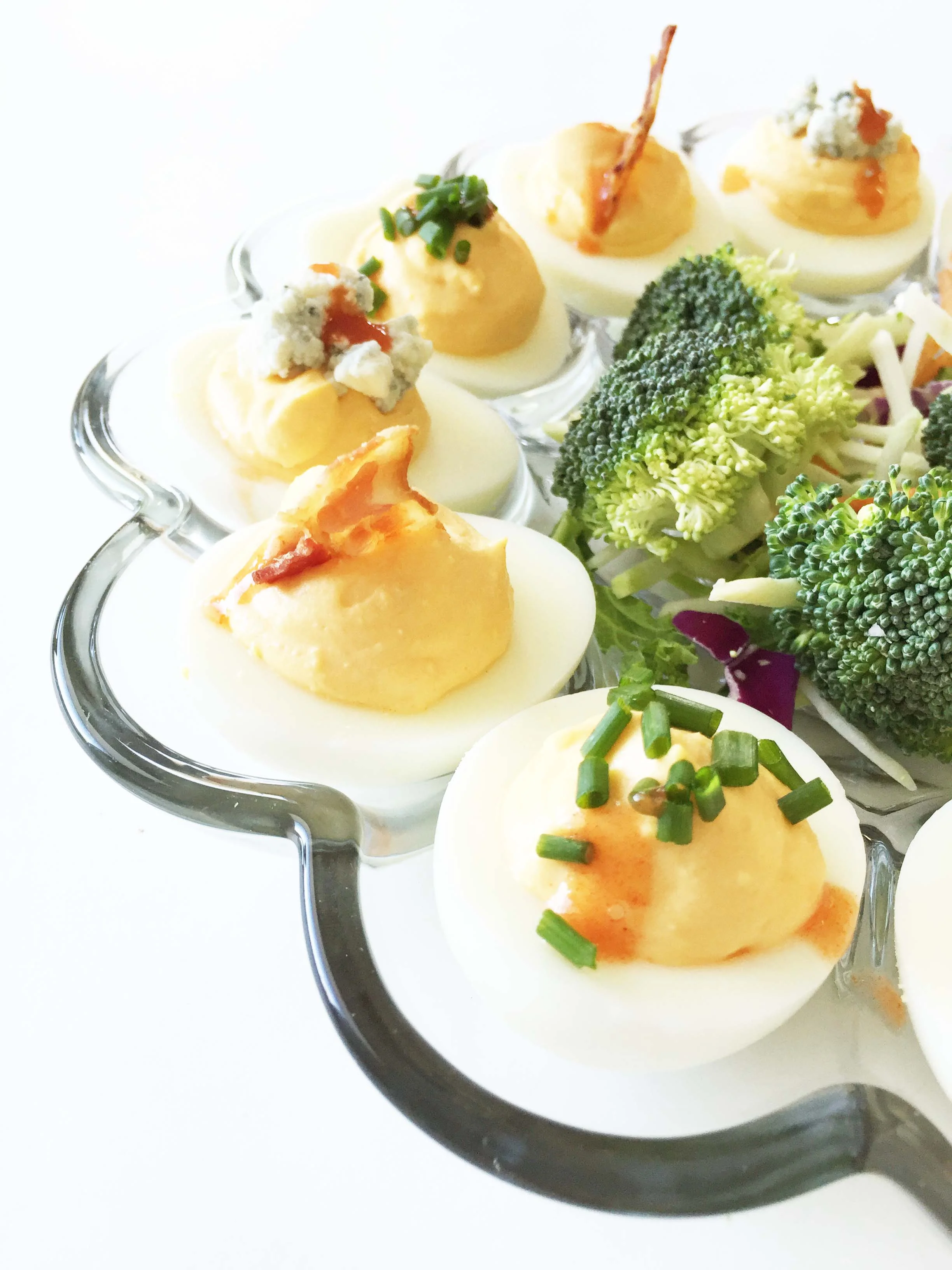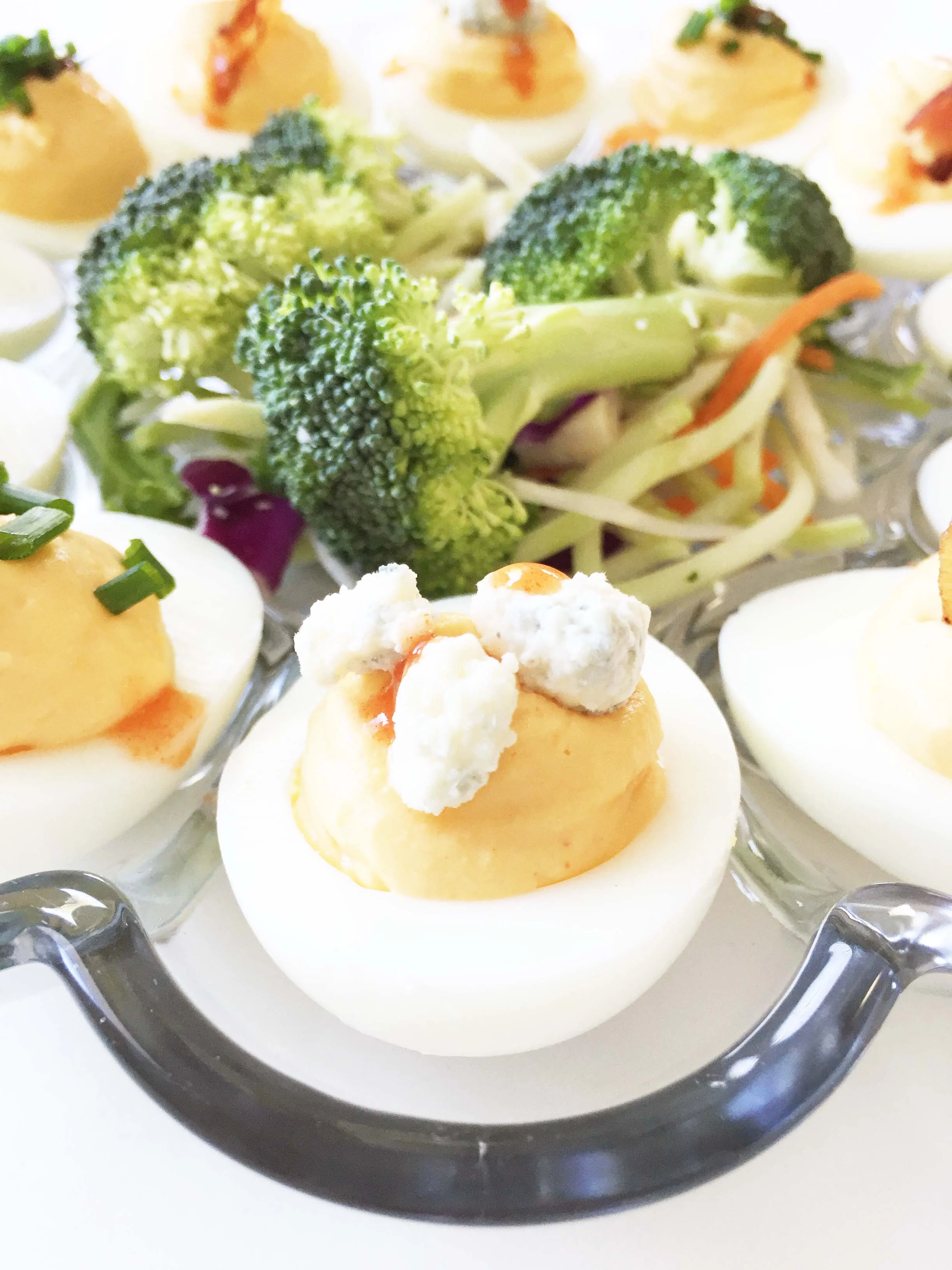 Skinny Buffalo Blue Cheese Deviled Eggs