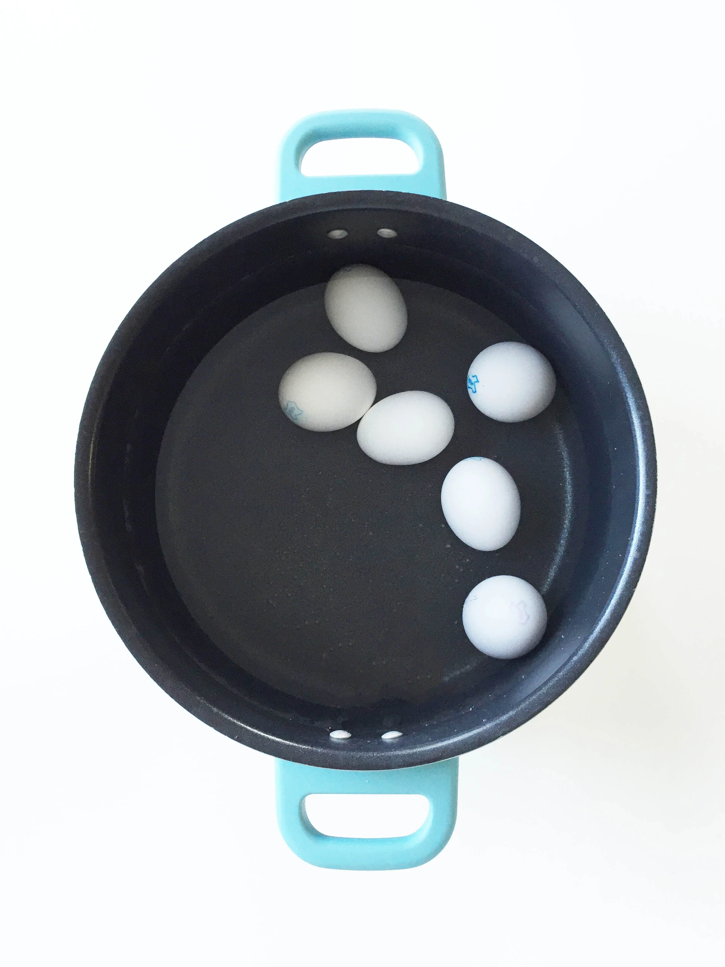 Place the eggs direction in a large pot and cover with 1" of water; bring a large pot of water to a boil over high heat.