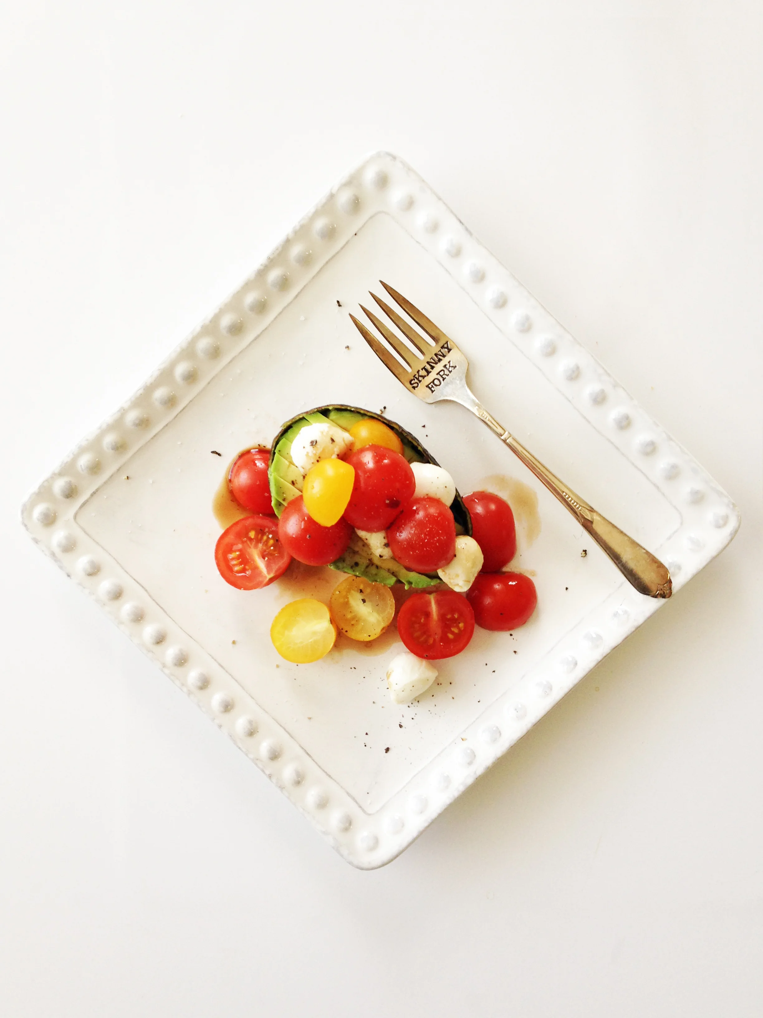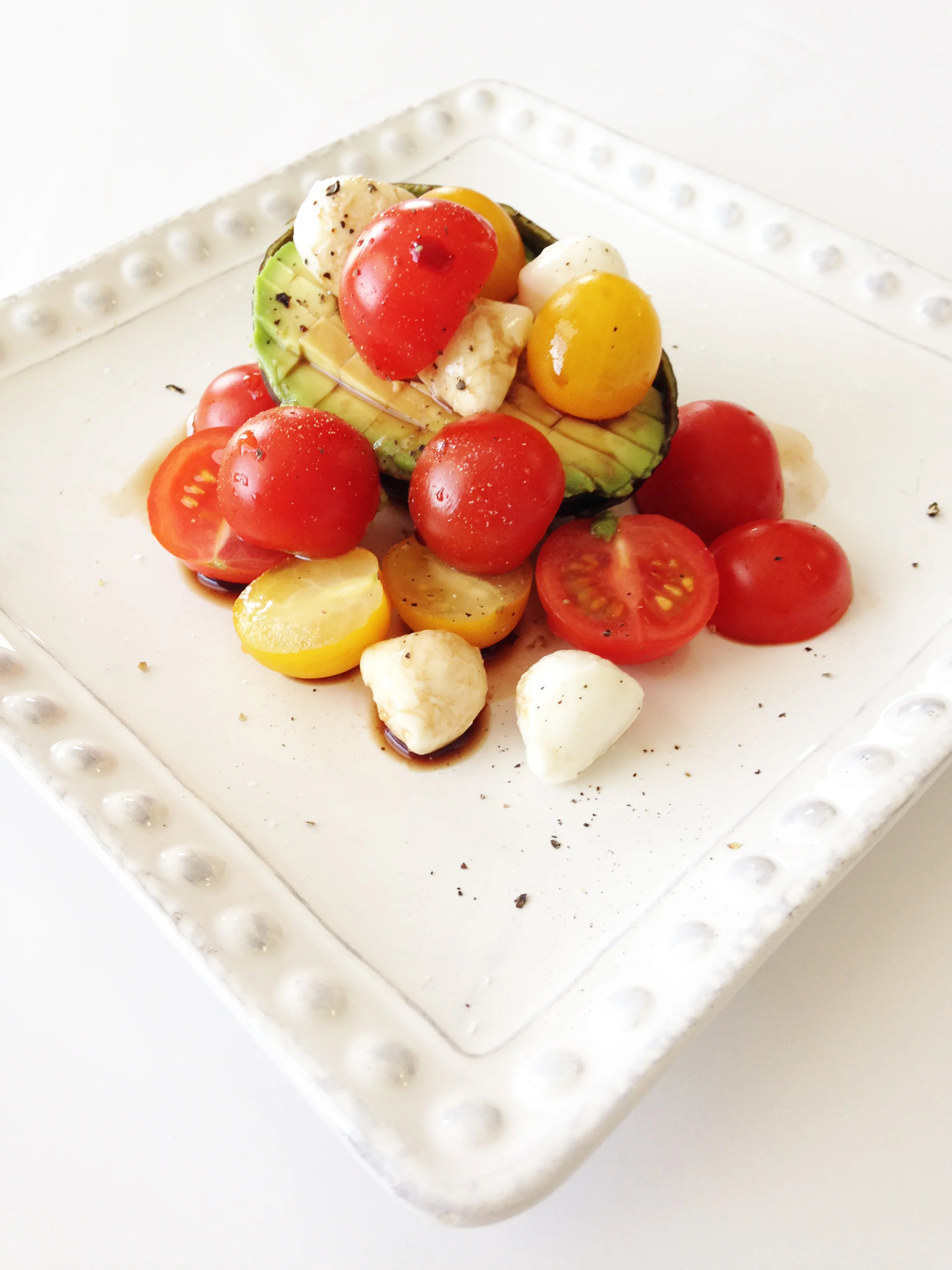 For those that don't know... a caprese salad is typically comprised of tomato, fresh mozzarella, and sometimes basil. It's usually topped with some sort of balsamic vinegar or vinaigrette.
