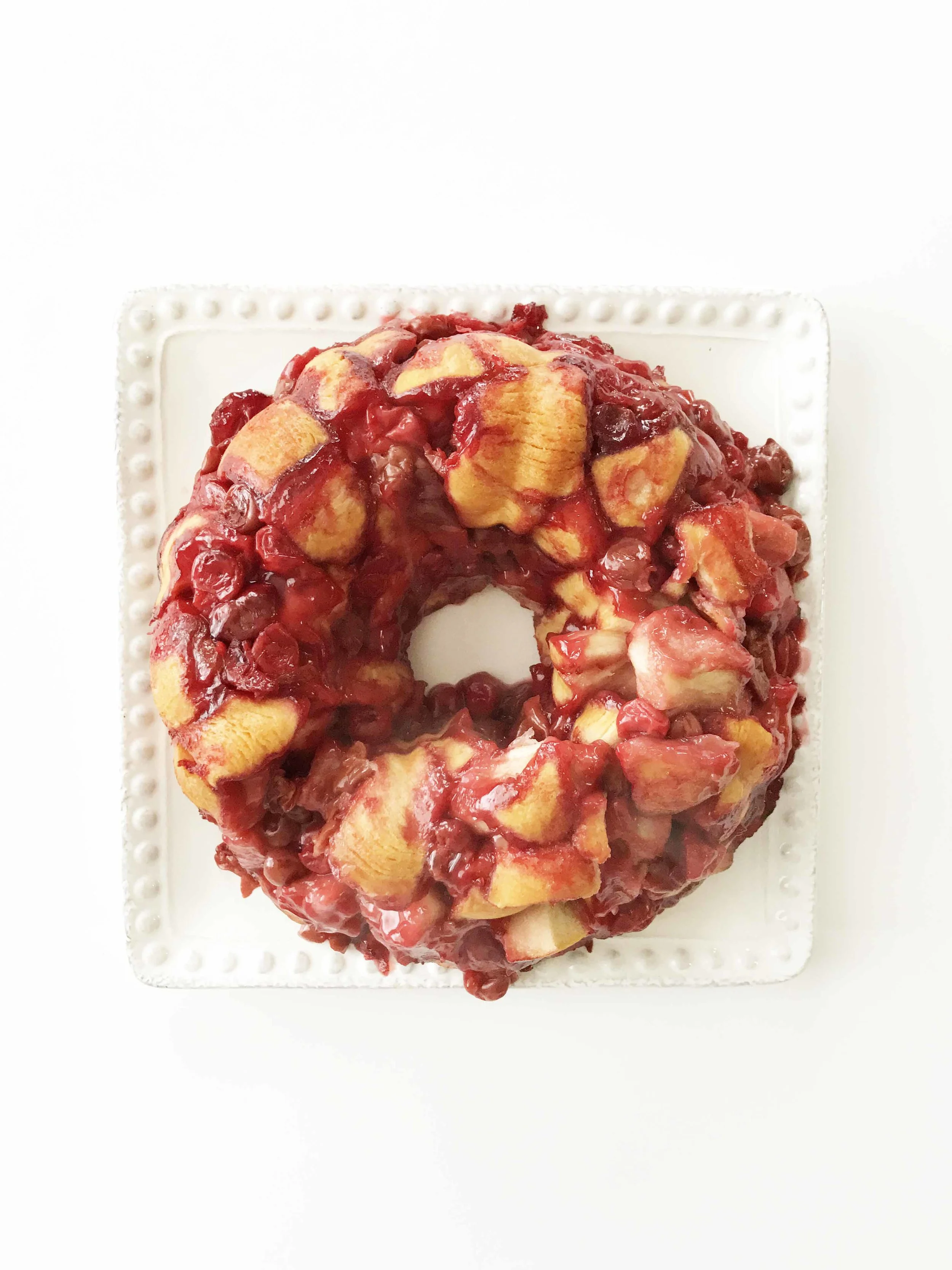 This recipe makes for a rather large bundt pan full of cherry pie monkey bread goodness. It will feed a crowd, that's for sure. I think I'll be eating cherry pie monkey bread for the next week to get it all gone. You don't see me complaining about that though.