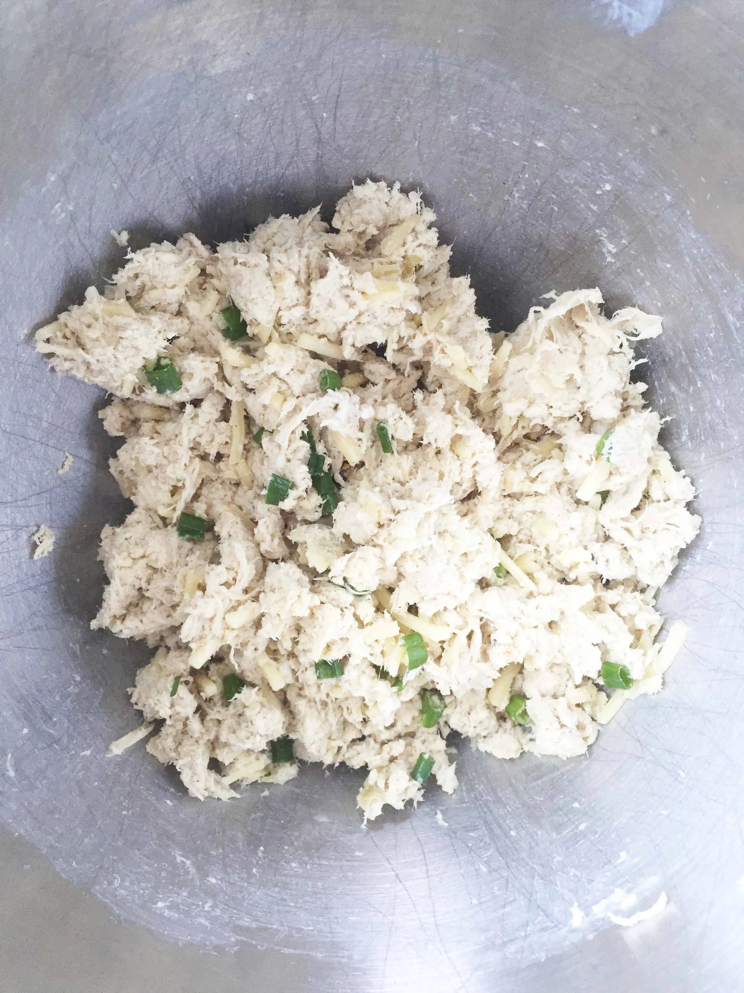 Scoop out chicken mixture and make 1 1/2-inch balls, first rolling in flour, then dipping in egg and last coating with cereal.