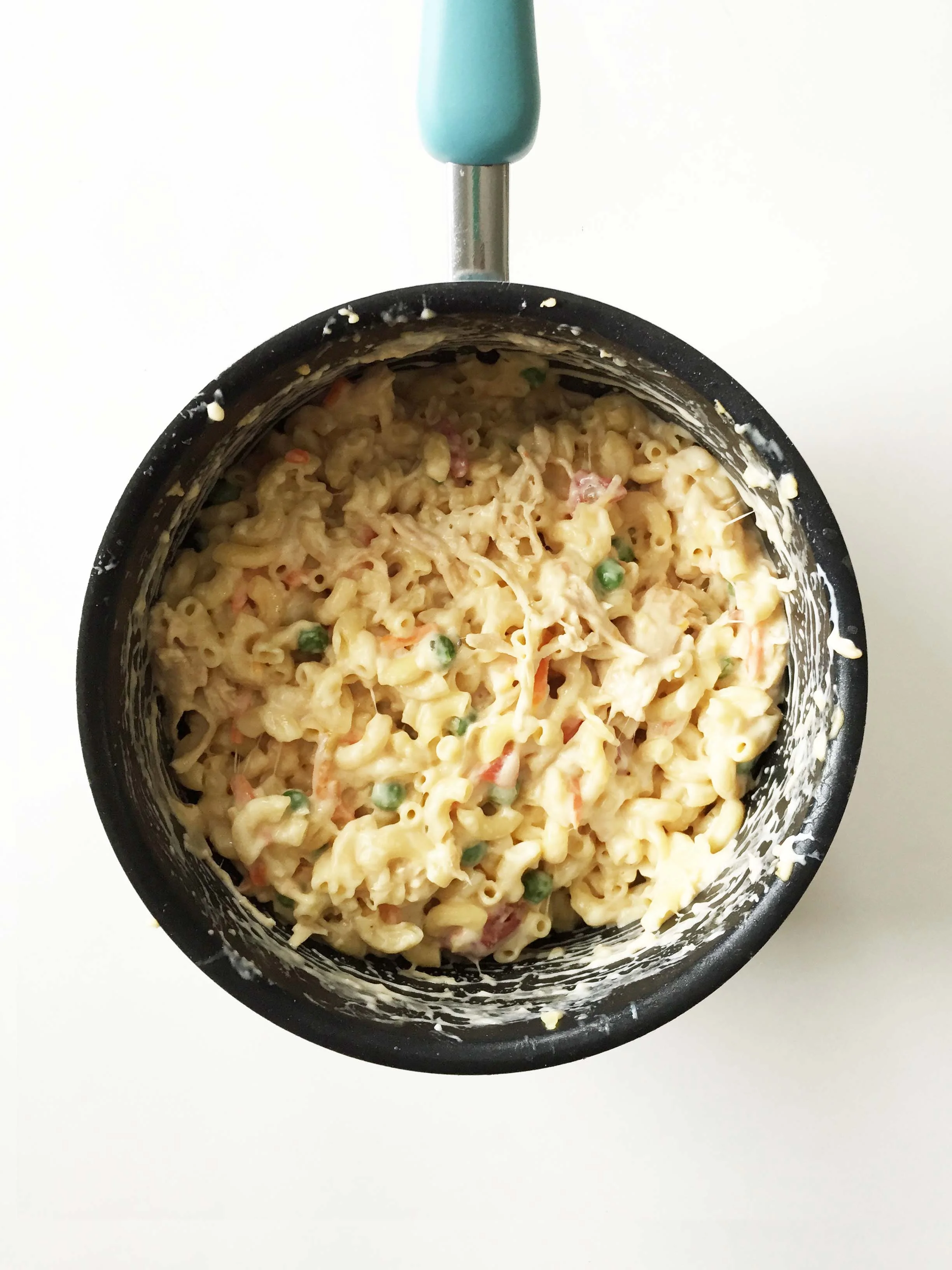 So, today for our macaroni, I wanted to get some things in there that I know she likes, while sort of sneaking in something in there that's been turned away heatedly since day one. Chicken.