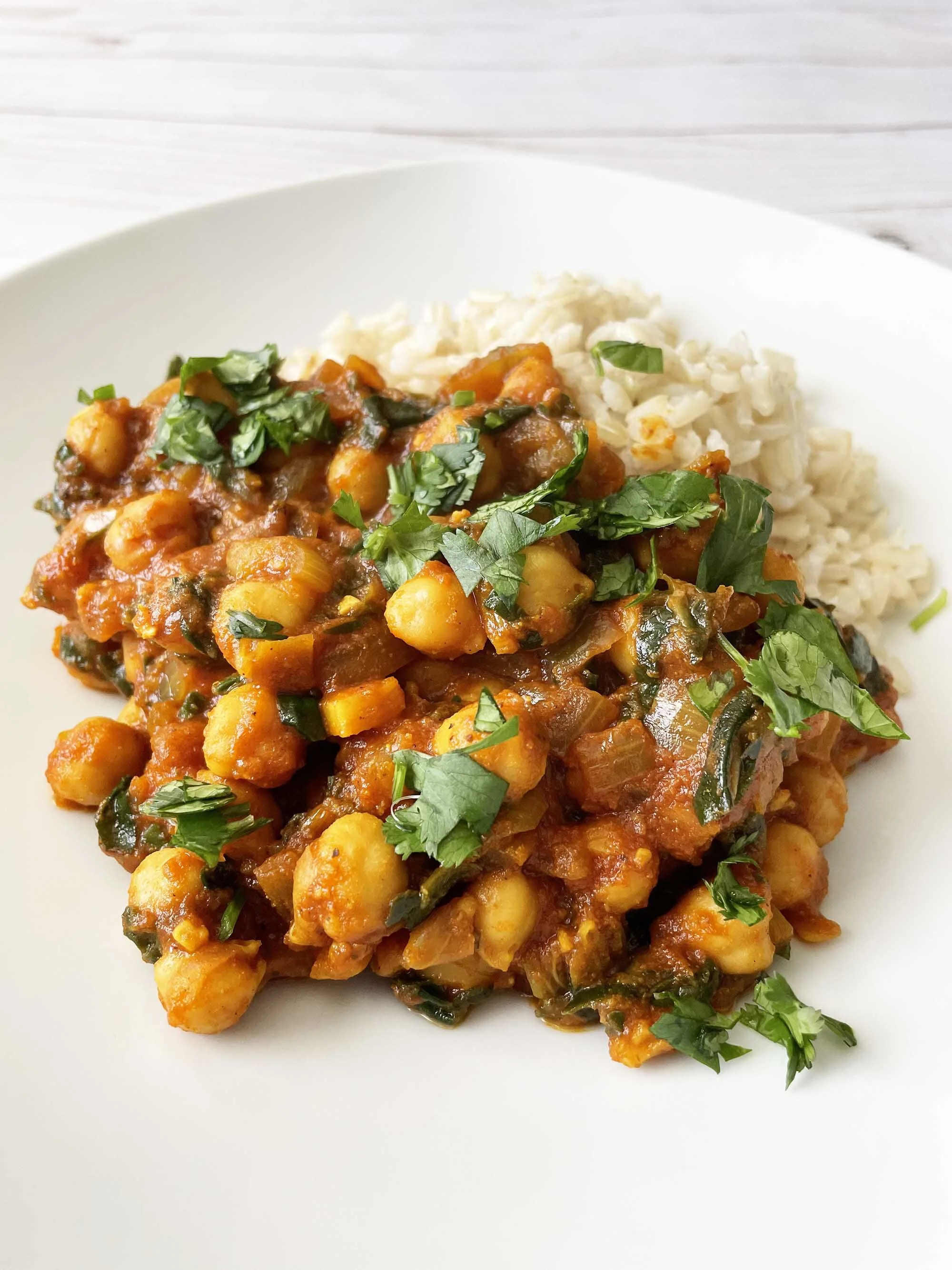 Yep, still over here trying to eat less meat. The more delicious vegetarian options that I can come up with at this point, the better. And this Chickpea & Spinach Curry is so quick, easy, and tasty that it may just have to go into the weekly rotation.