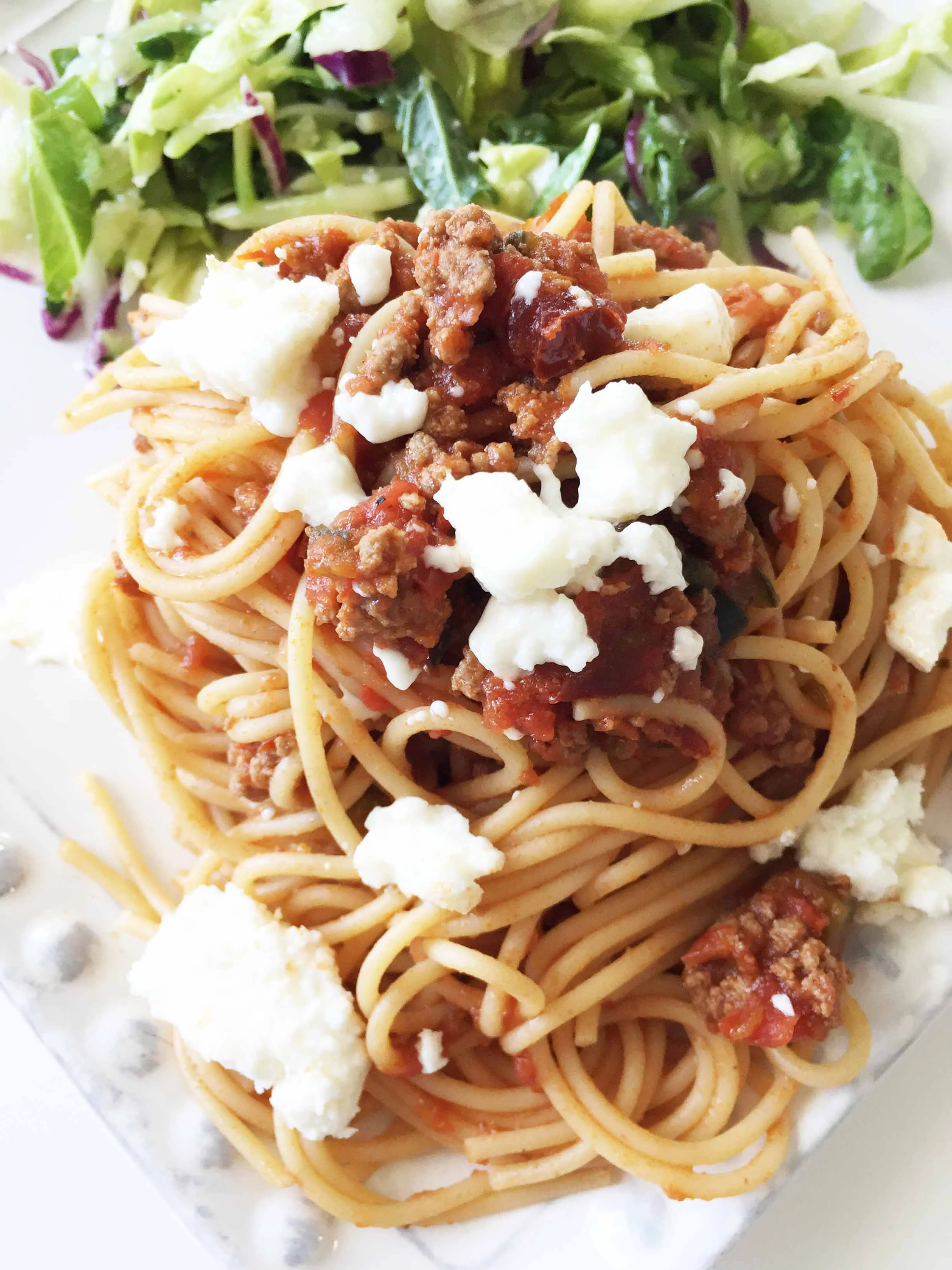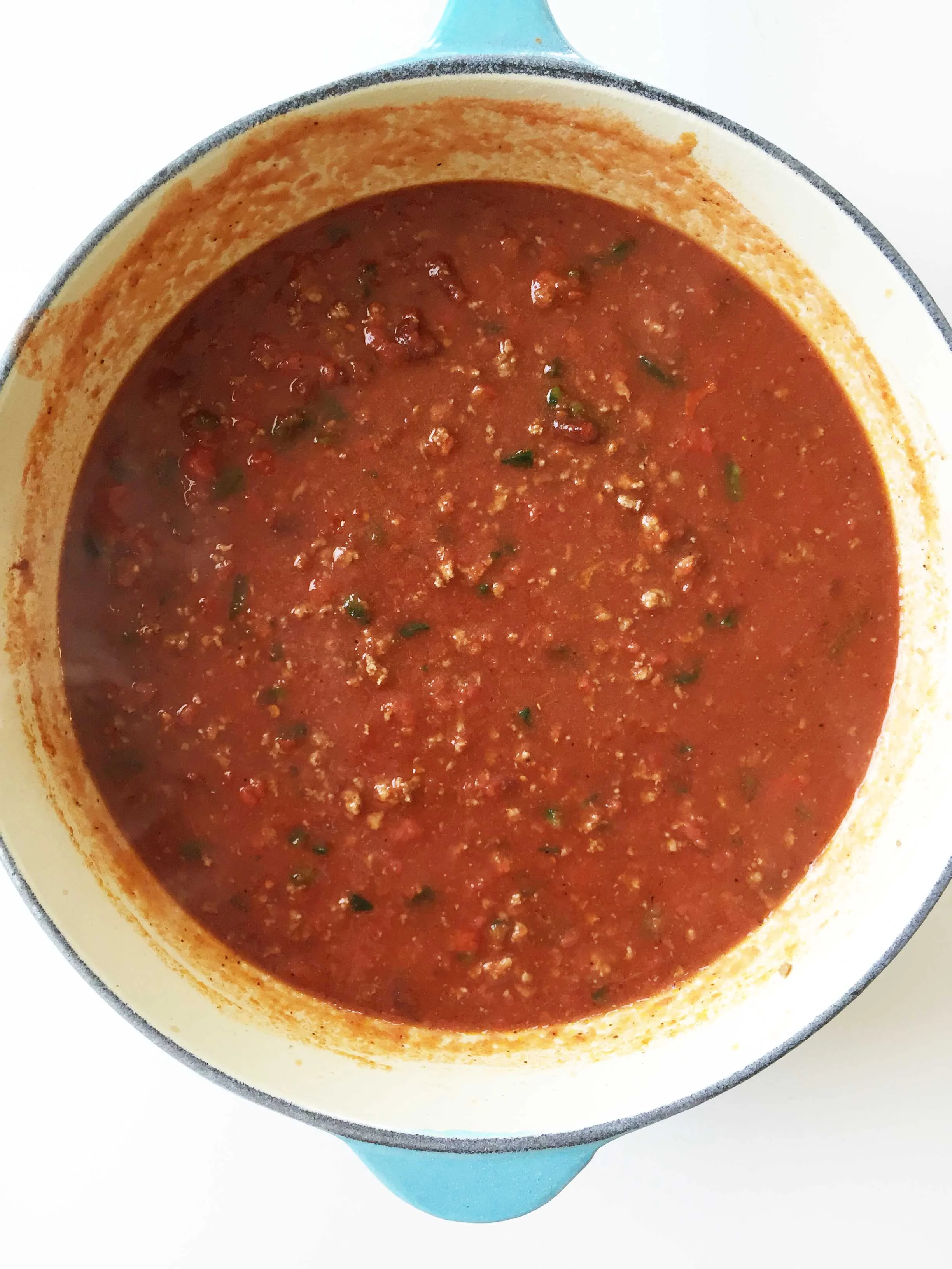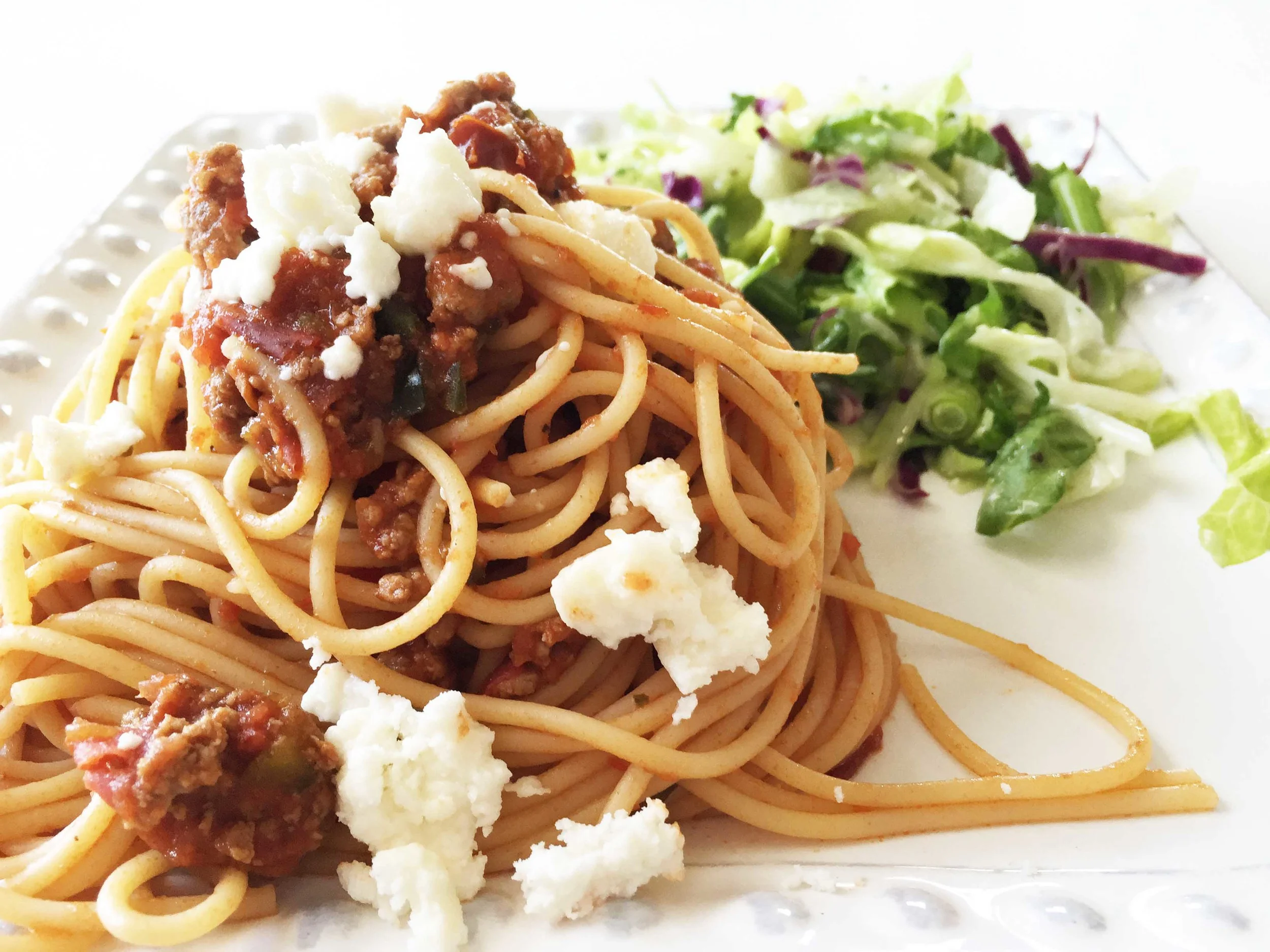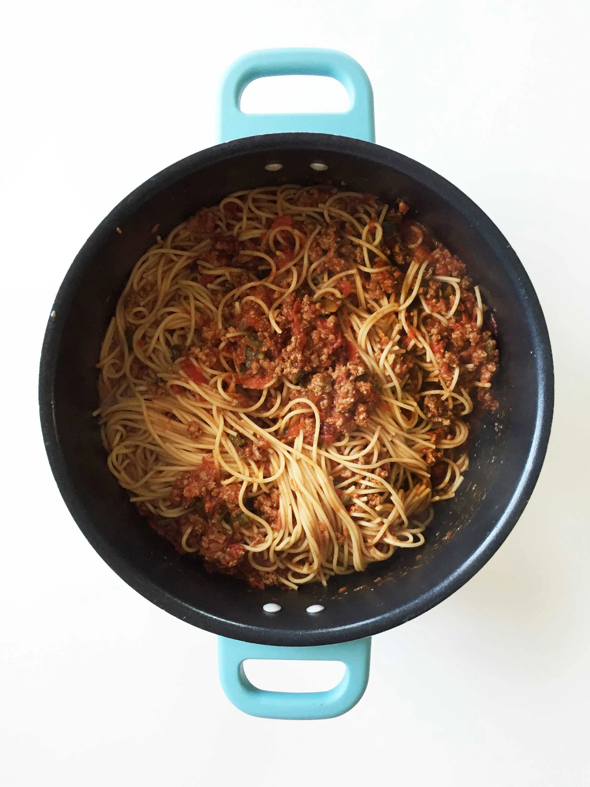 Just like the four generations in my family, this spaghetti takes unique flavors and puts them into one cohesive and amazing finished product that works beautifully together in the end. This starts out as anything but a traditional spaghetti with the heat of the chipotle and poblano being cooked together into an otherwise familiar hearty and meaty tomato sauce.