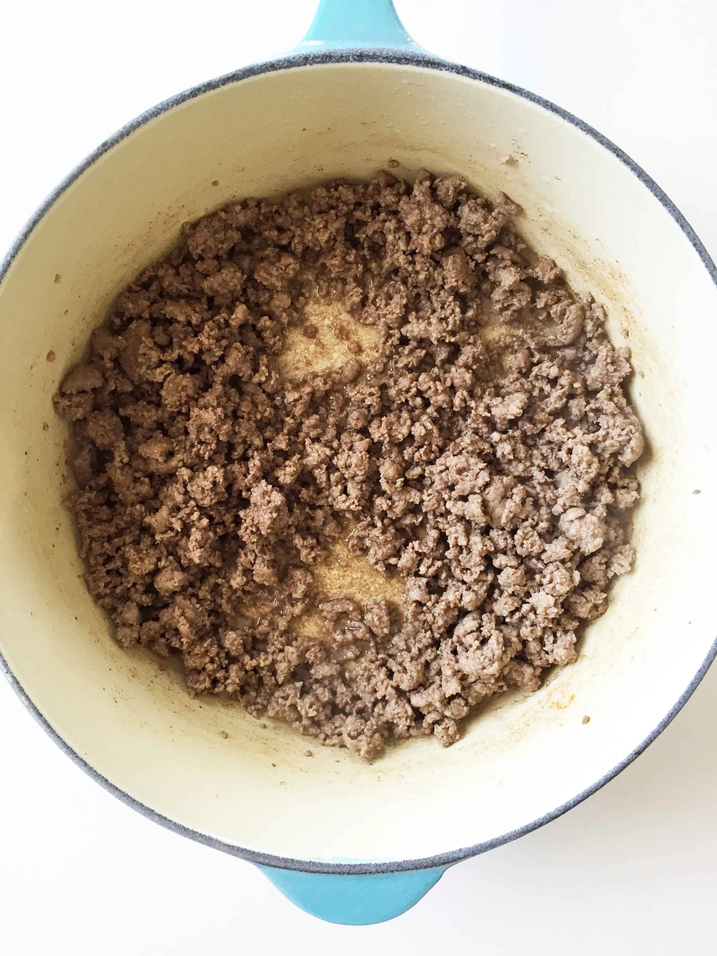 While waiting on the water to boil, sauté beef in the olive oil over a medium-high heat for about 4-5 minutes or until the meat is browned.