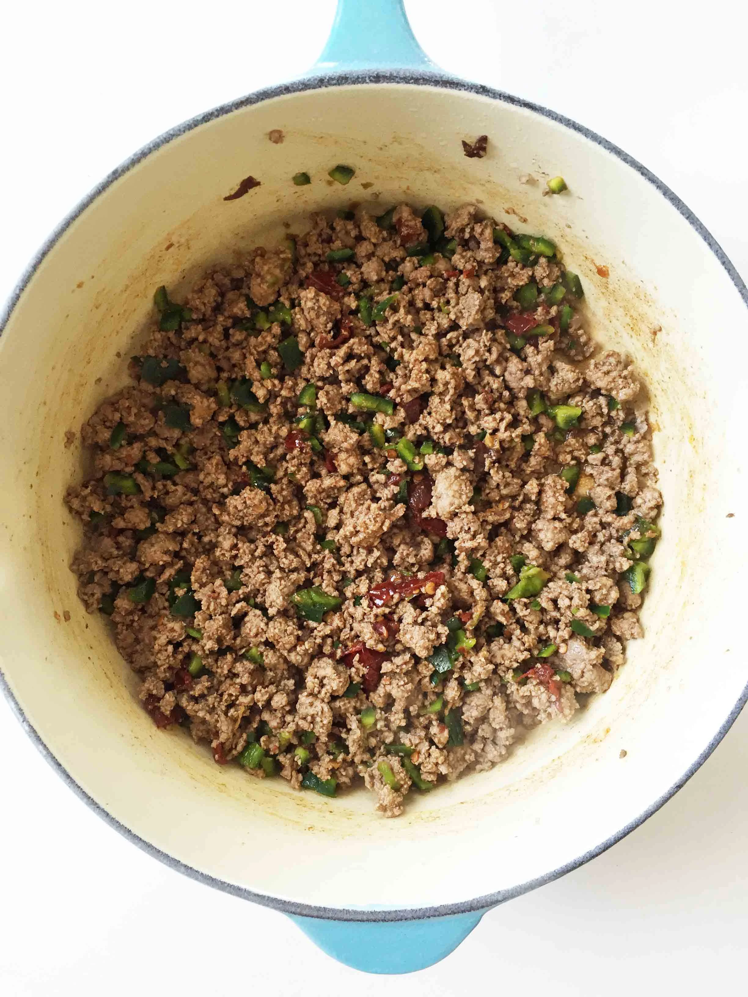 Add in the chipotle and poblano; sauté for about another minute.