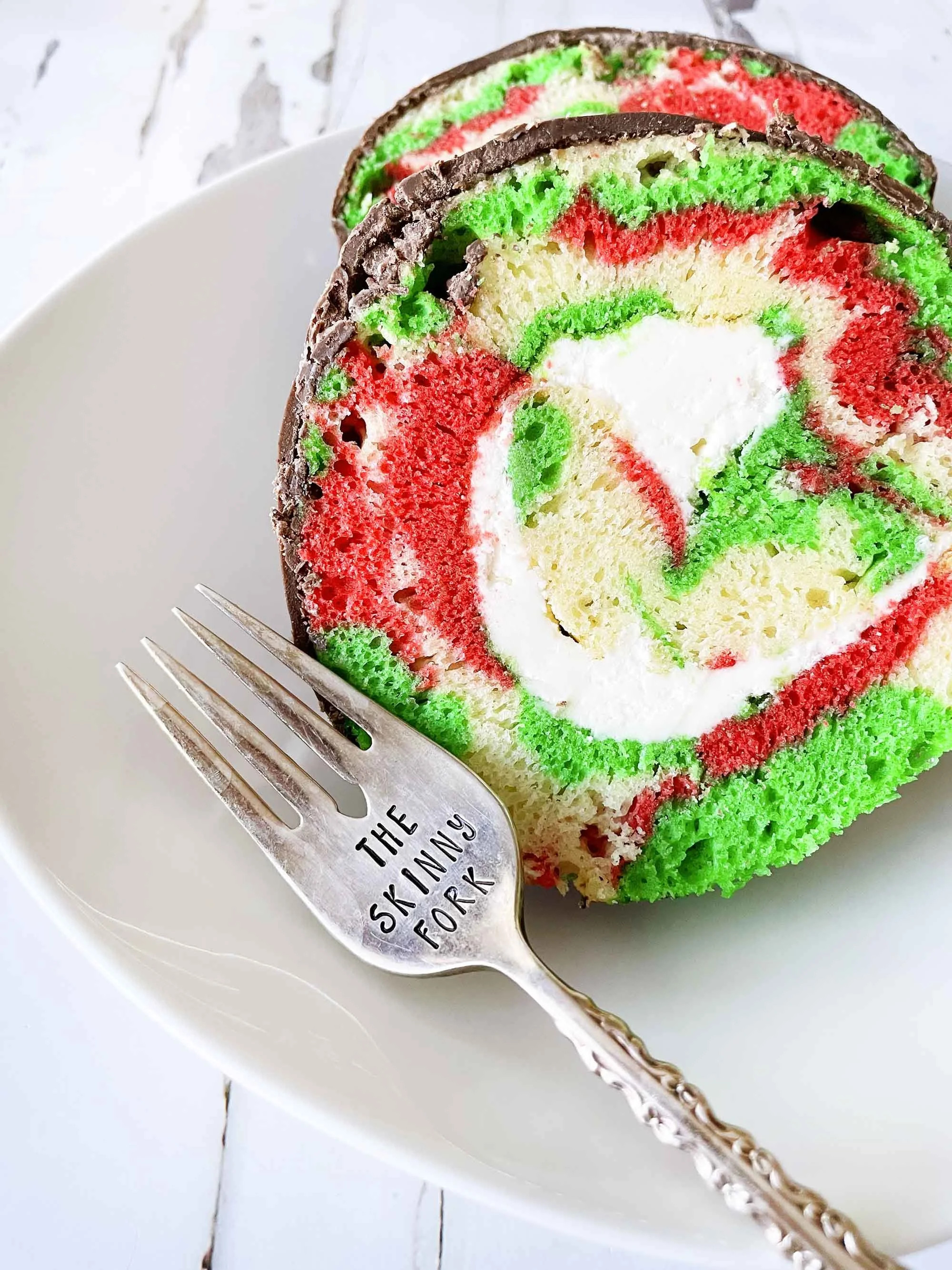 With Christmas just a few days away now, I thought I would try my hand at making a dessert to have on hand that was not only festive, but tasty too! I really enjoy roll cakes, even though they aren’t the easiest of cakes to make, they are always super impressive. Especially when you make them colorful and halfway homemade; which is exactly what this Christmas Cake Roll is!
