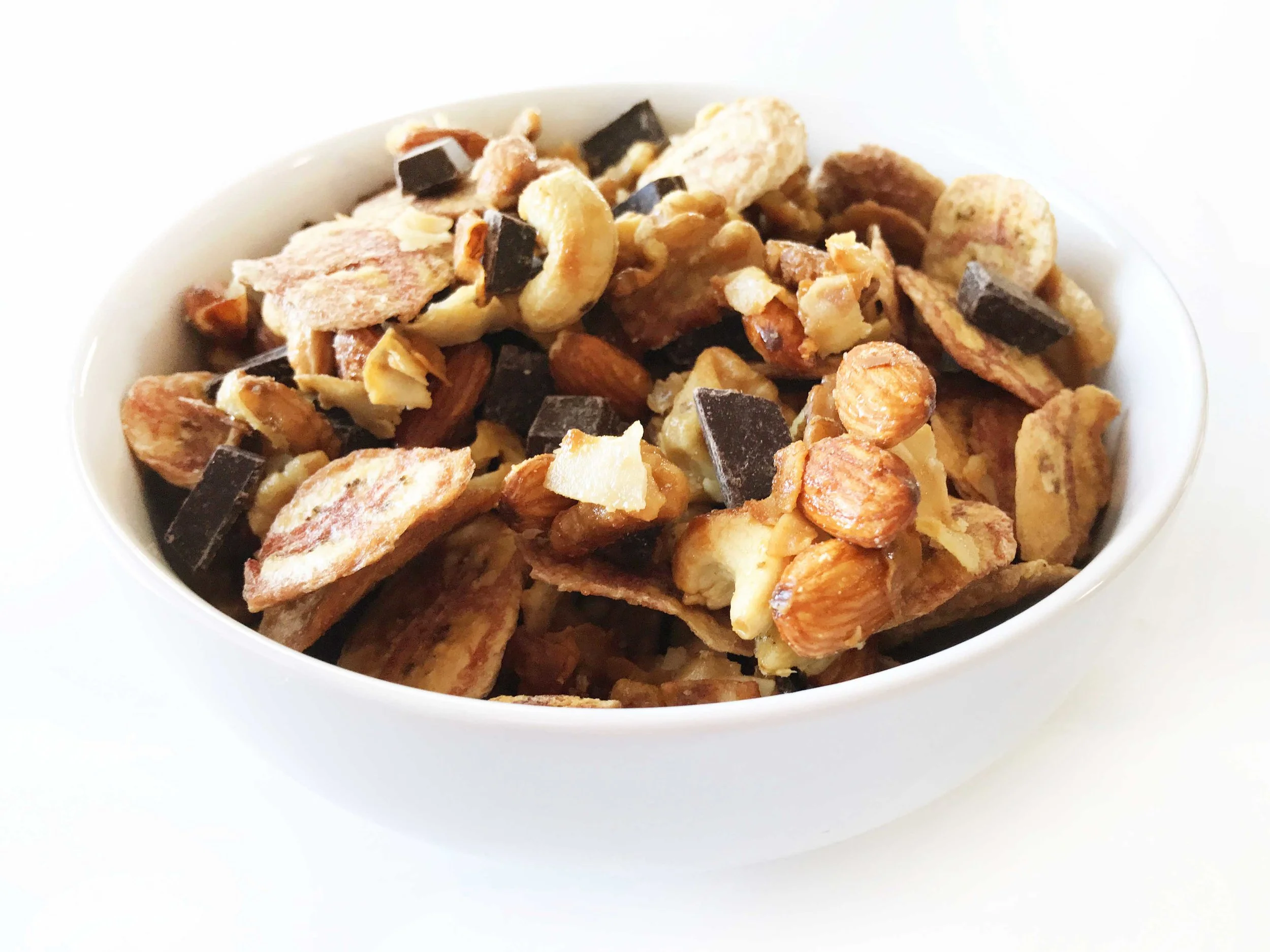 This Chunky Monkey Trail Mix is sure to curb those cravings in a more wholesome way. It's great to have on hand and lasts in the pantry for at least a couple of weeks. And feel free to make this your own, using whatever nuts might suit your desires.