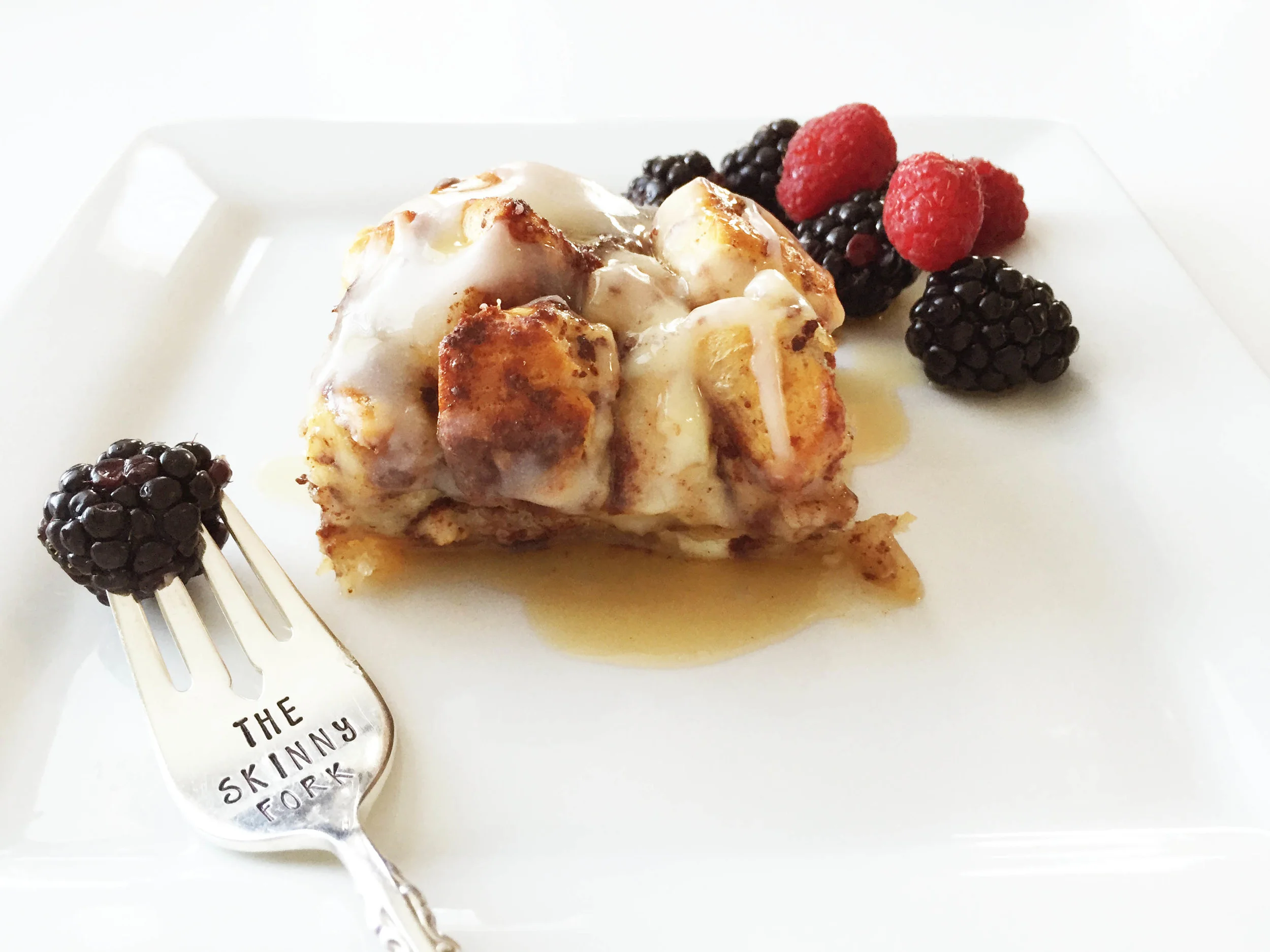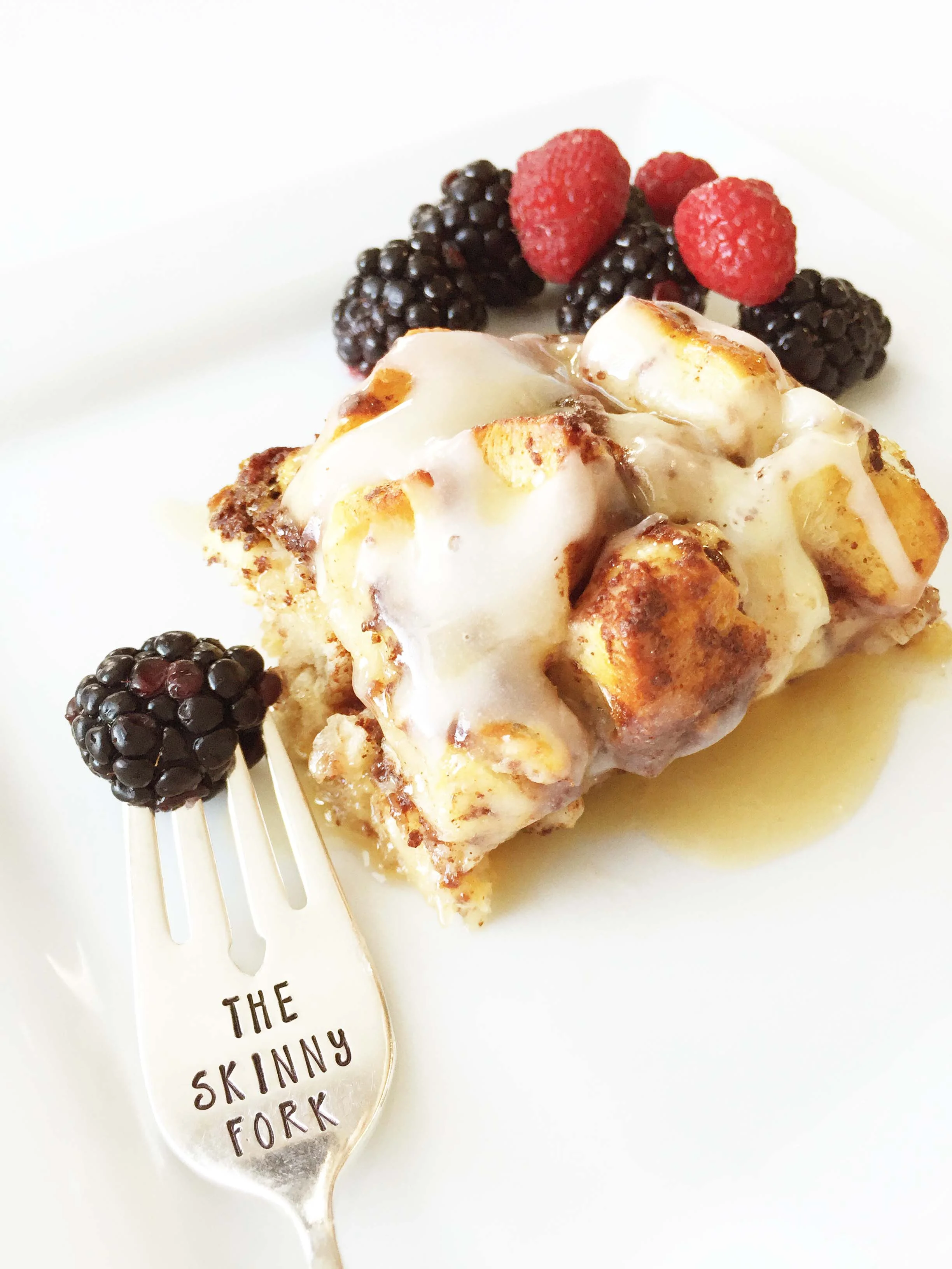 A few weeks back, my brother was showing me this awesome breakfast/dessert that he had come across. He must think it's fun to tag me in some of the most 'un-skinny' recipe ideas that he comes across. Hey, if he didn't razz me I would think he didn't care!