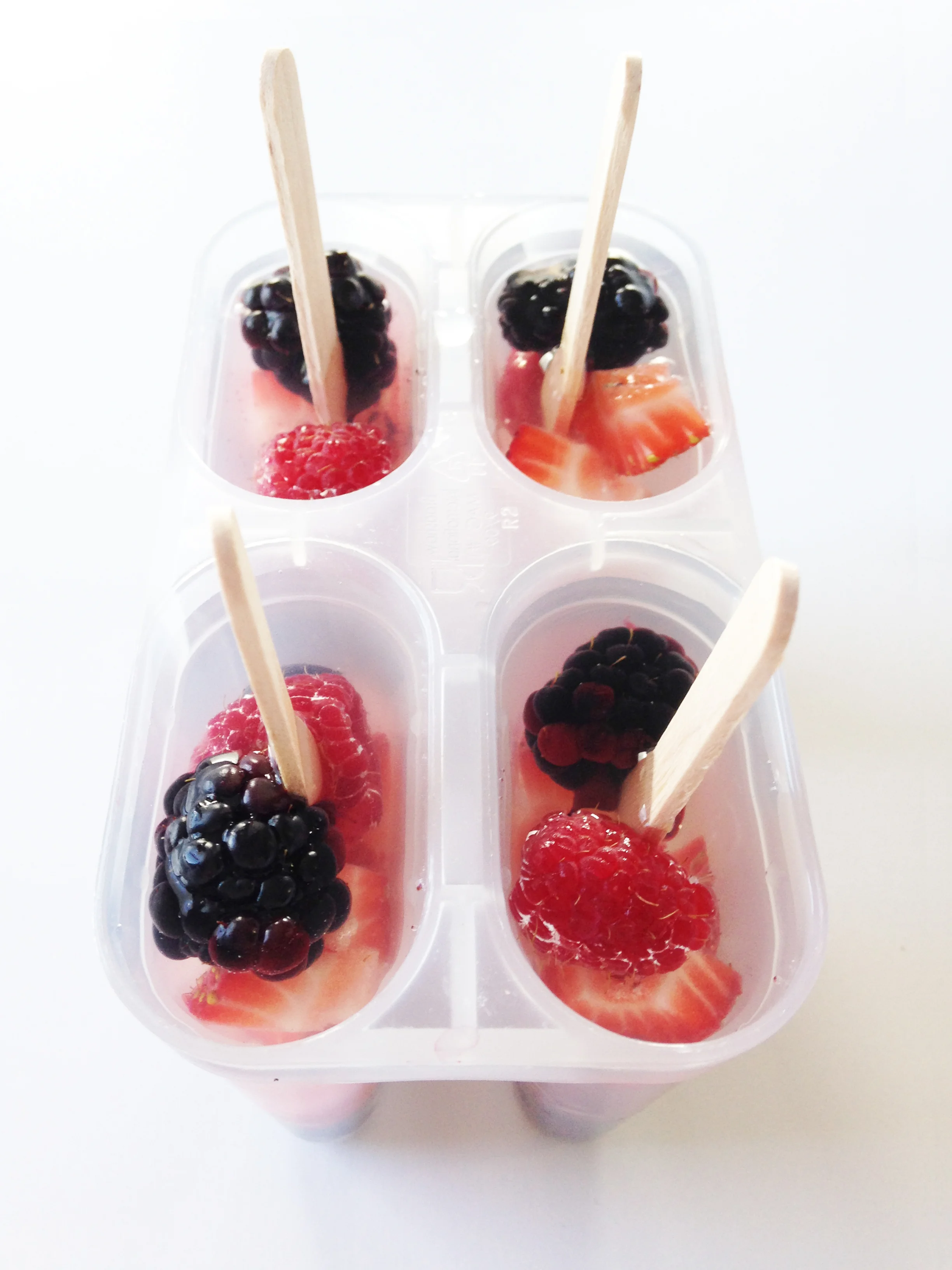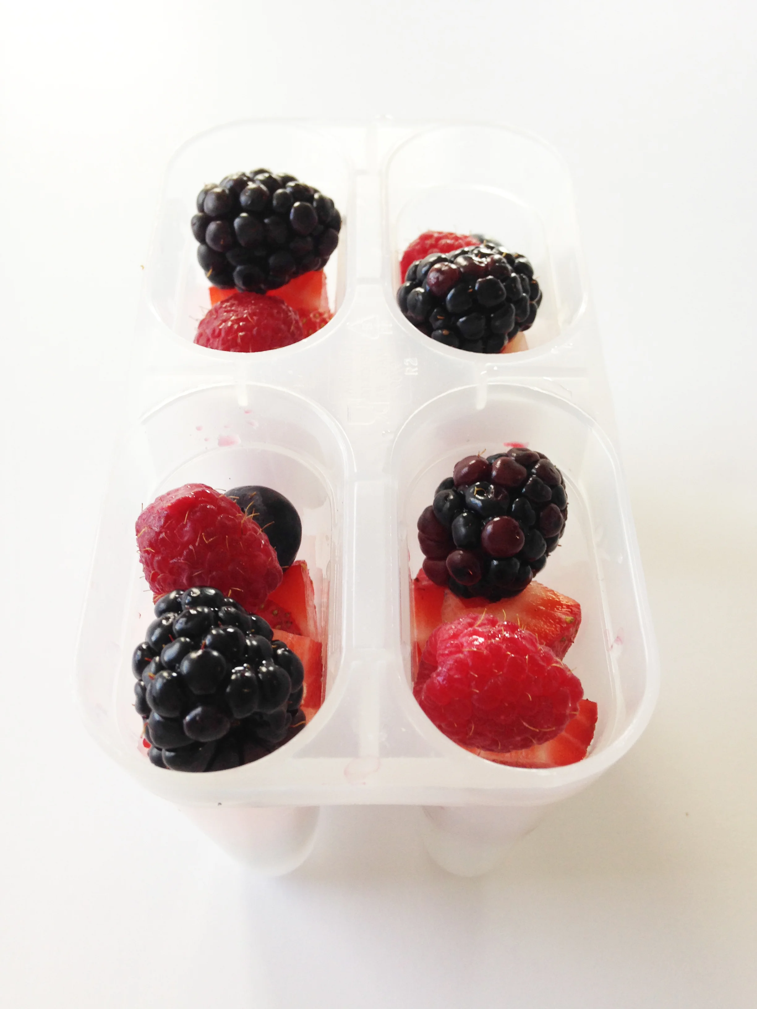 Fill your popsicle mold with fresh berries.