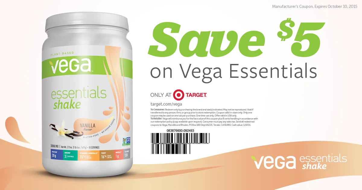While you're at Target, make use of the coupon above to get your $5 off your Vega Essentials!