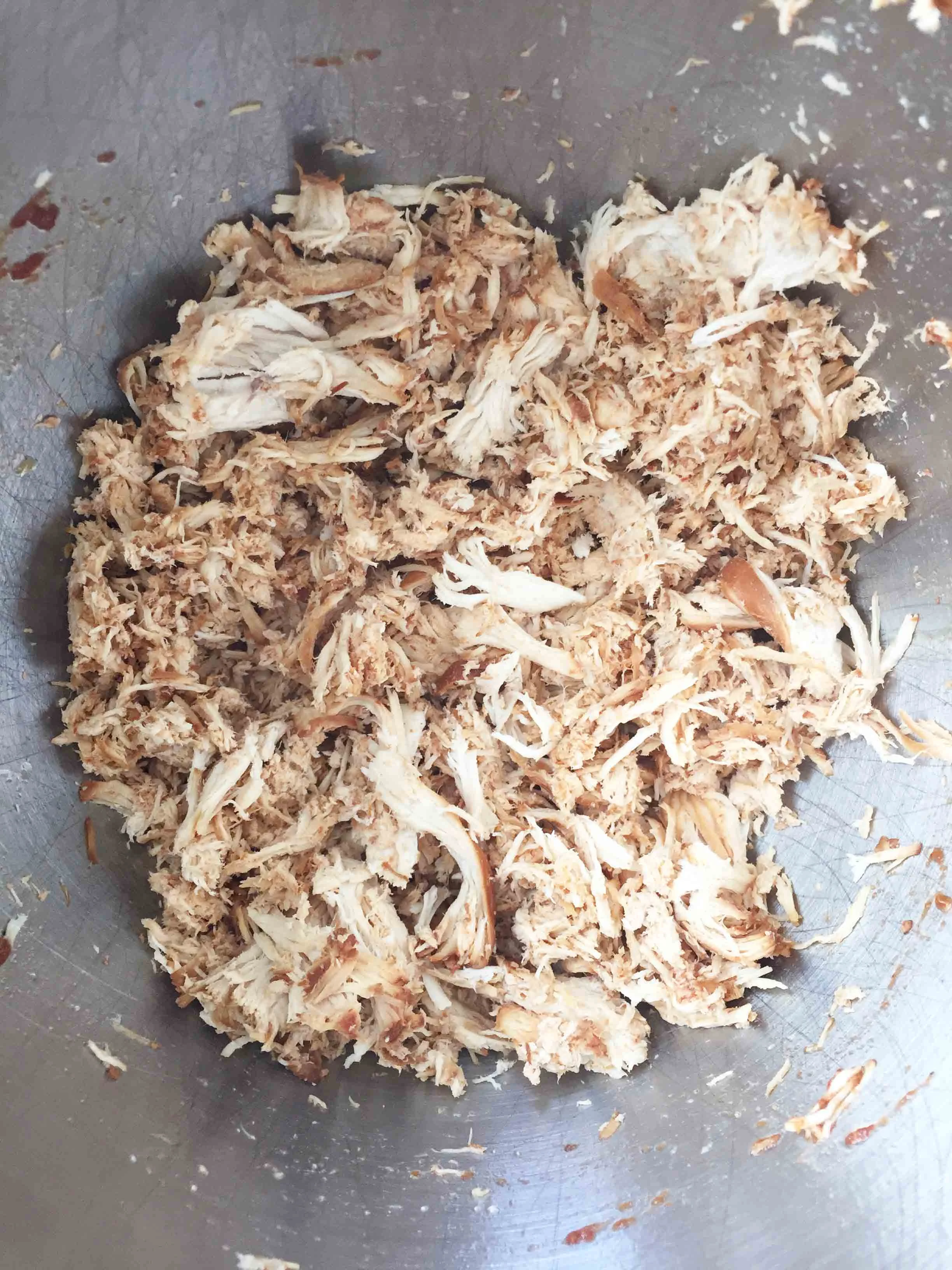 Once the chicken is done, remove the chicken from the sauce and shred.