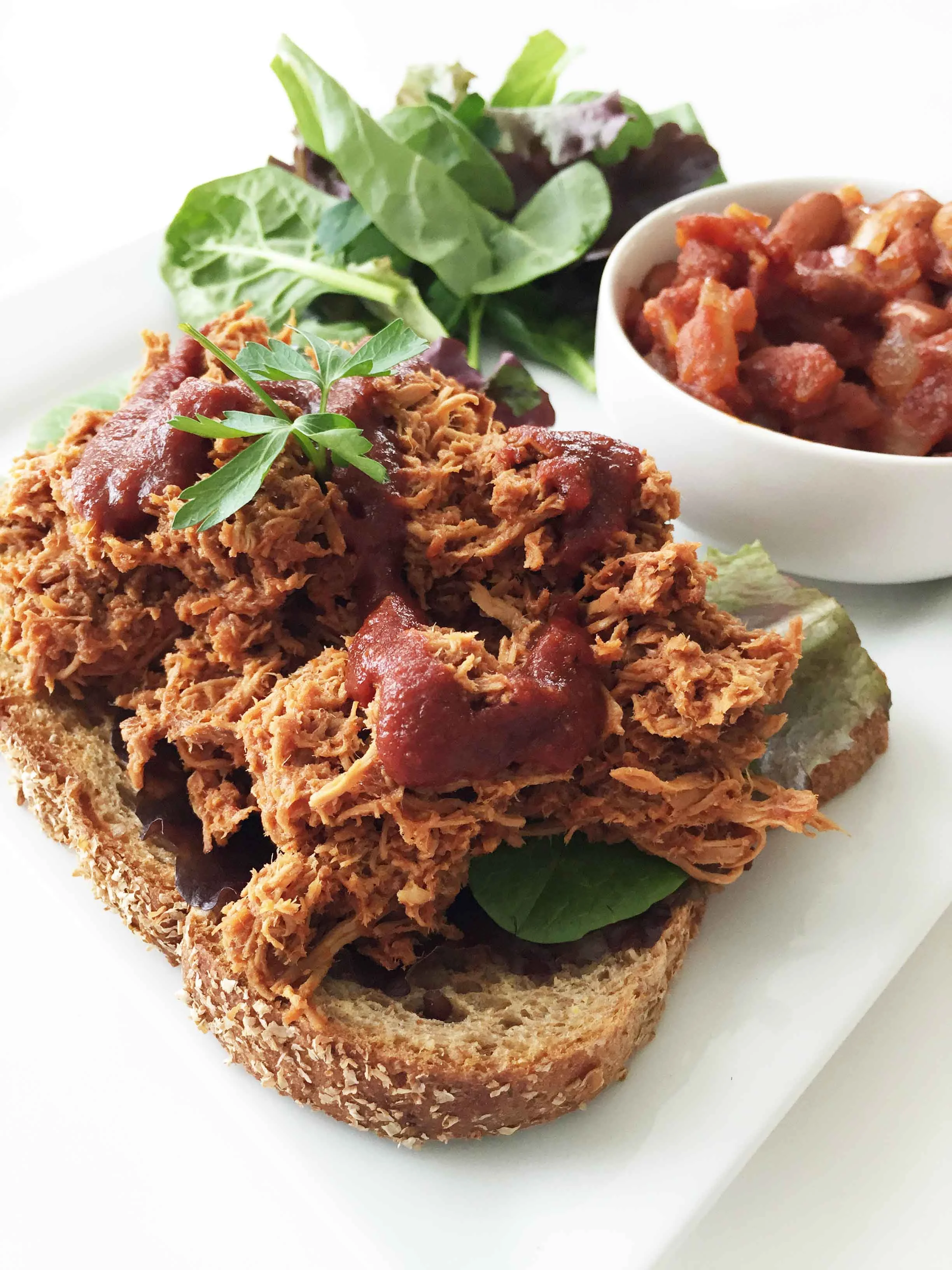 I served mine over some whole wheat multi-grain bread as an open-face sandwich with some mixed greens and a drizzle of the Coke Zero B.B.Q. Sauce with a side of baked beans and a little more lightly dress salad on the side.