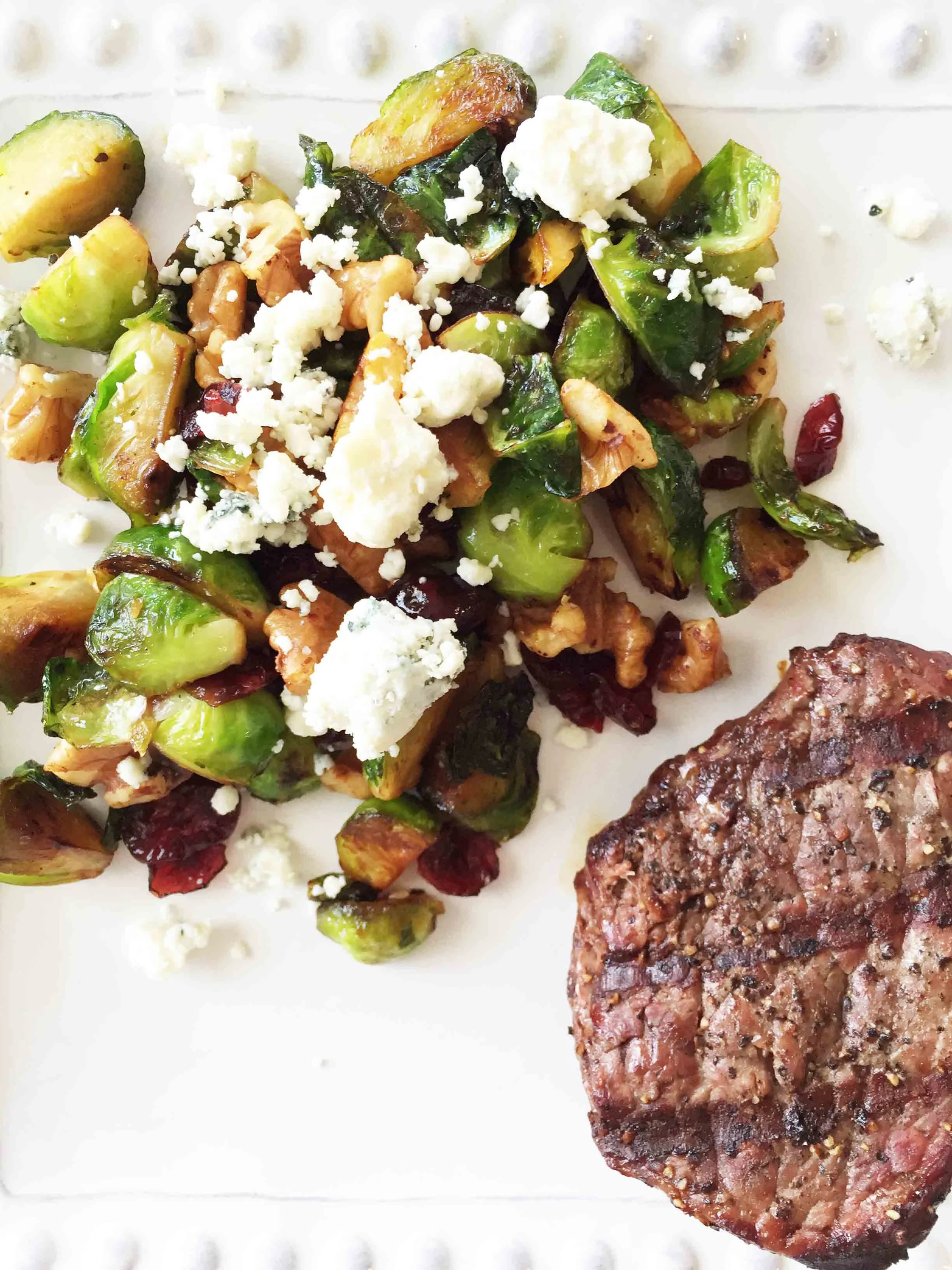 With another major foodie-holiday rolling up on us all quickly, I thought that a side of some brussel sprouts with cranberries, walnuts, and blue cheese would make a great tasty side dish for any holiday meal!